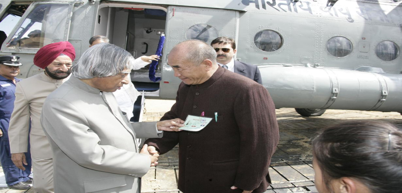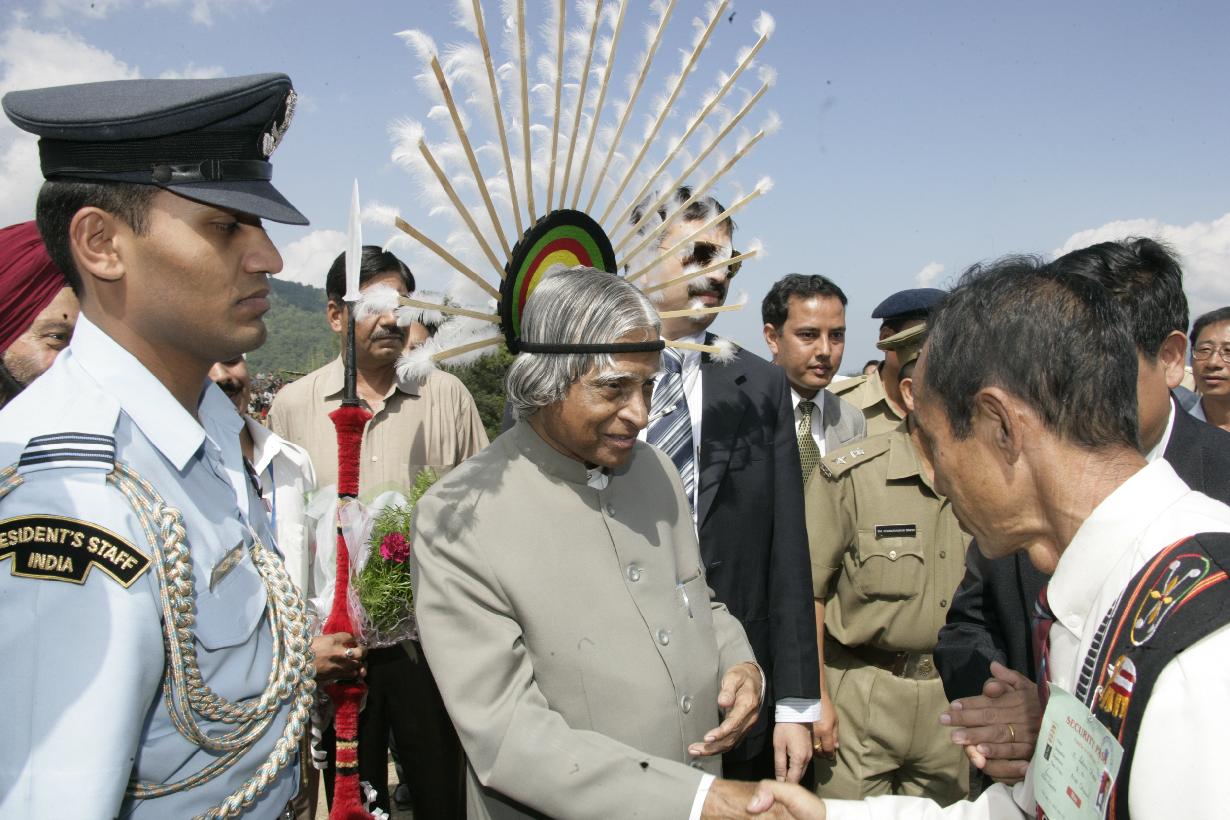 The President of India, Dr A P J Abdul Kalam arriving at Mao Punanamei Helipad District of Senapati in Manipur on Oct 16, 2006