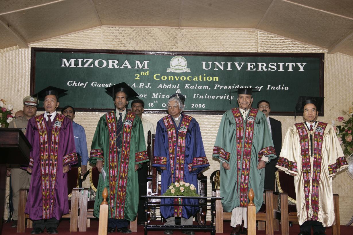 The President of India, Dr A P J Abdul Kalam addressing at the Convocation of Mizoram University Aizawl and Presents Degree & Medals to the Students at Aizawl in Mizoram on Oct 16, 2006