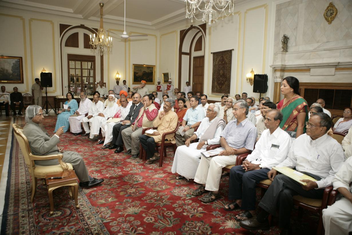 The President of India, Dr A P J Abdul Kalam interacting with Social Workers from various NGOs at the Yellow Drawing Room of Rashtrapati Bhavan in New Delhi on Aug 15, 2006