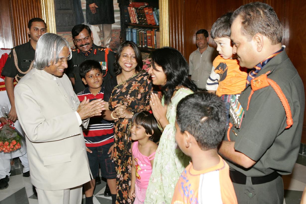 The President of India, Dr A P J Abdul Kalam at the Reception to the Officers, JCOs, Ors of 4 SIKH LI and their Families at Rashtrapati Bhavan in New Delhi on July 06, 2006