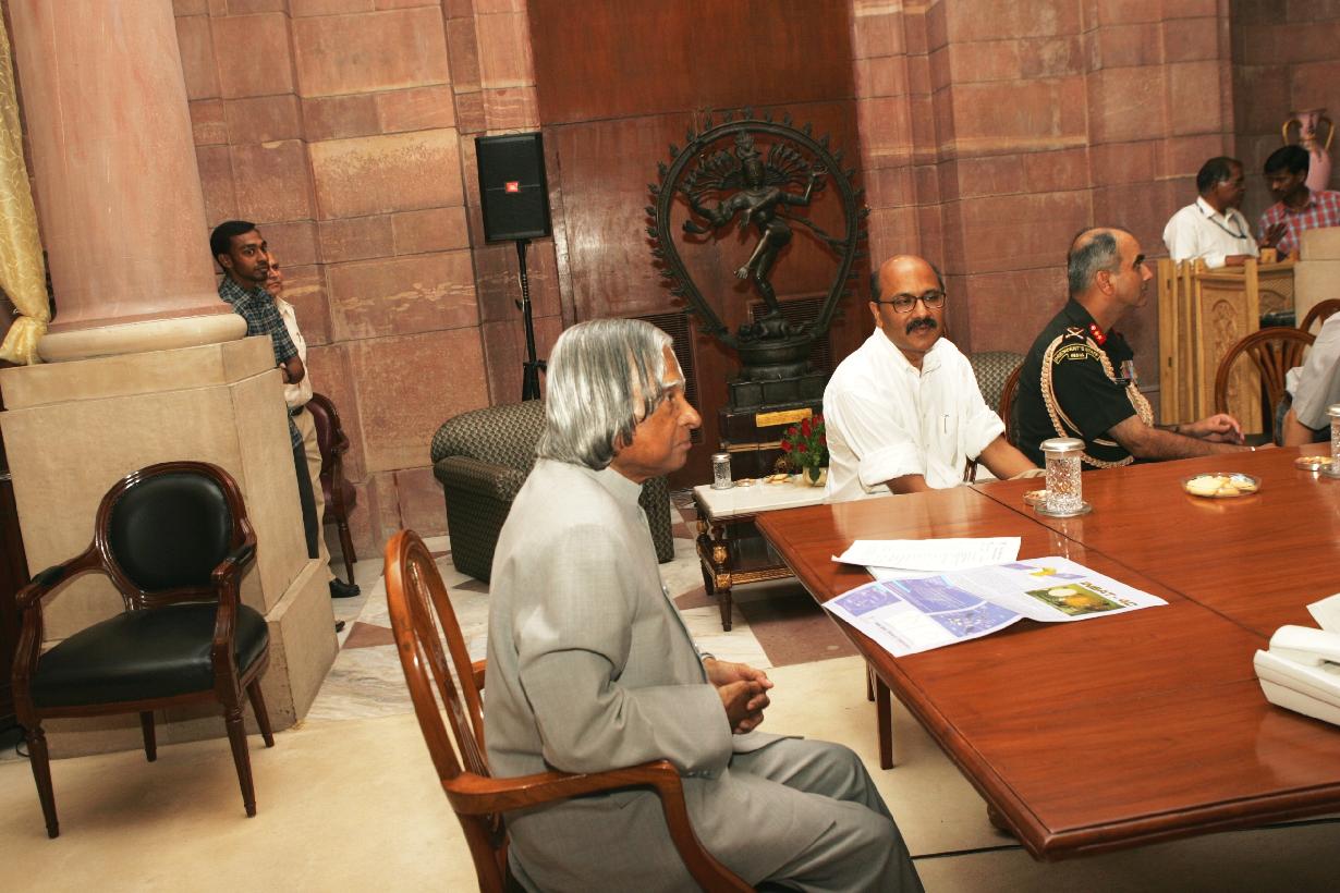 The President of India, Dr A P J Abdul Kalam meeting with the Chief Minister of Kerala, Shri V S Achuthanandan alongwith the Secretary to the Chief Minister Shri K N Balagopal and the Political Secretary to the Chief Minister, Smt Sheela Thomas and Resident Commissioner, Govt of Kerala, Shri Inderjit Singh at Rashtrapati Bhavan on New Delhi on July 07, 2006