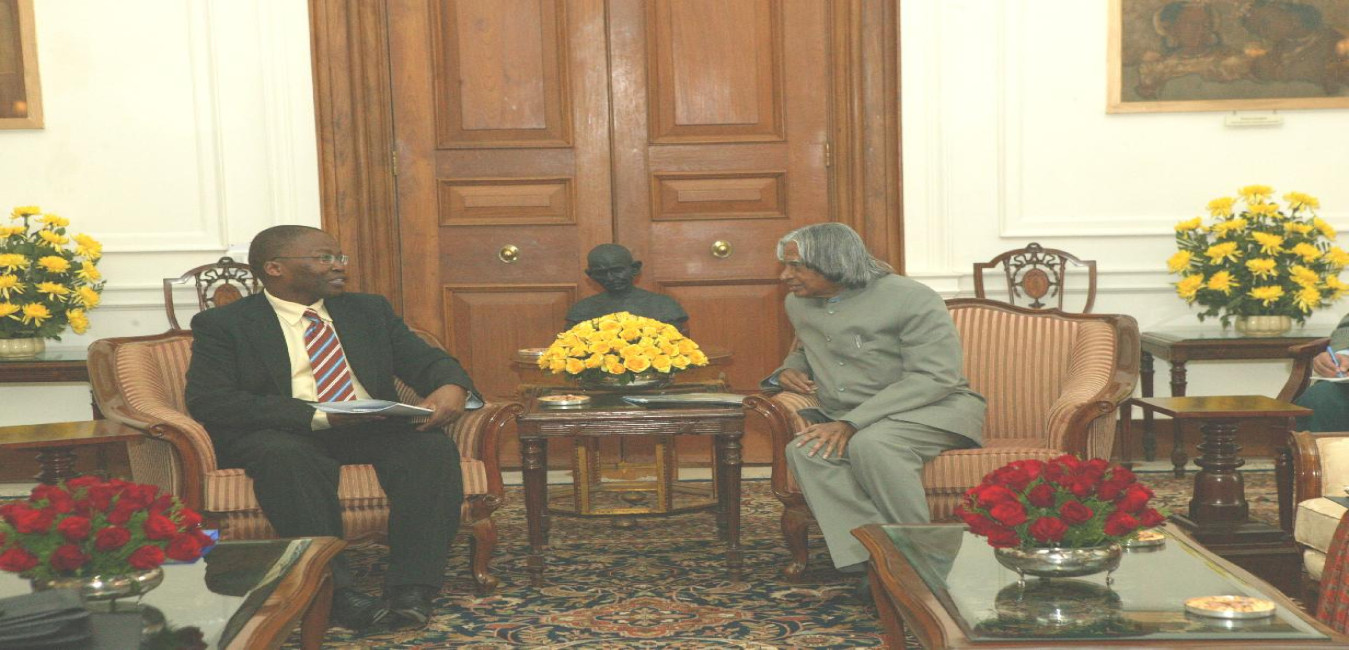 The Premier of the South African Province of KwaZulu Natal, Mr Sibusiso Ndebele calling on the President of India, Dr A P J Abdul Kalam at the Morning Room of Rashtrapati Bhavan in New Delhi on Dec 12, 2005