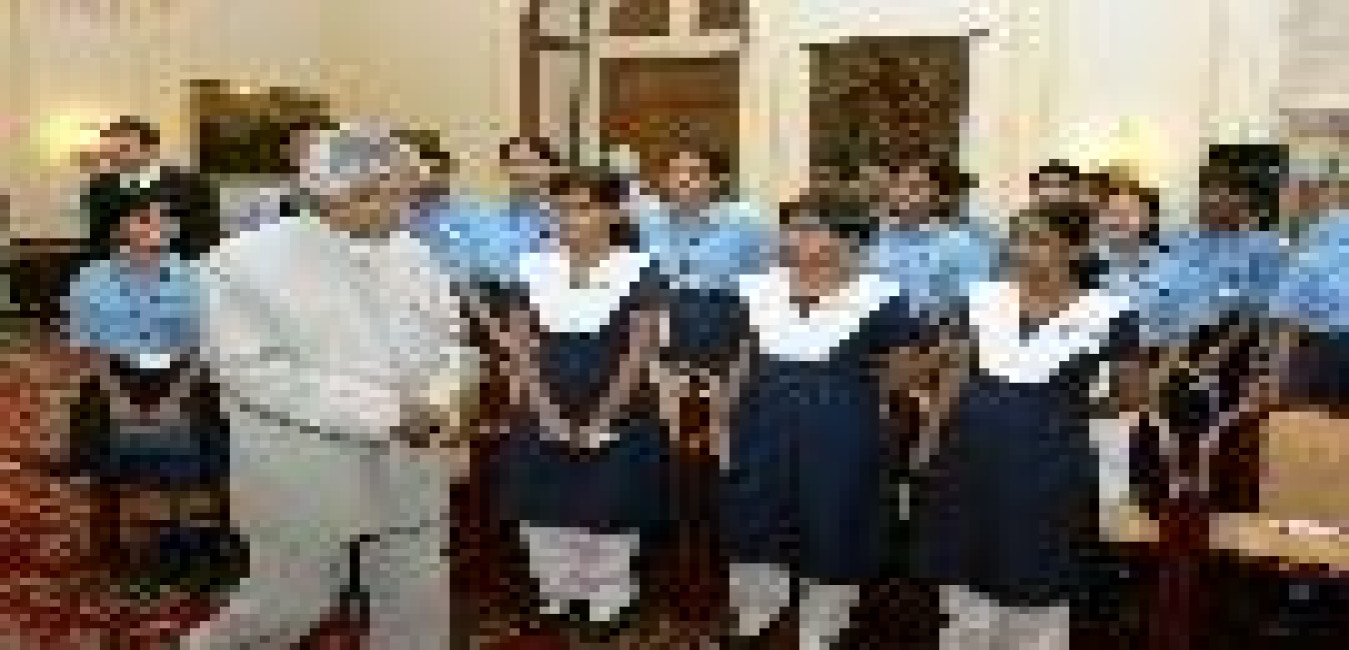 The Students from School at Air Force Stations under HQ Central Air Command, Allahabad calling on the President of India, Dr A P J Abdul Kalam at the Yellow Drawing Room of Rashtrapati Bhavan in New Delhi on Oct 24, 2005
