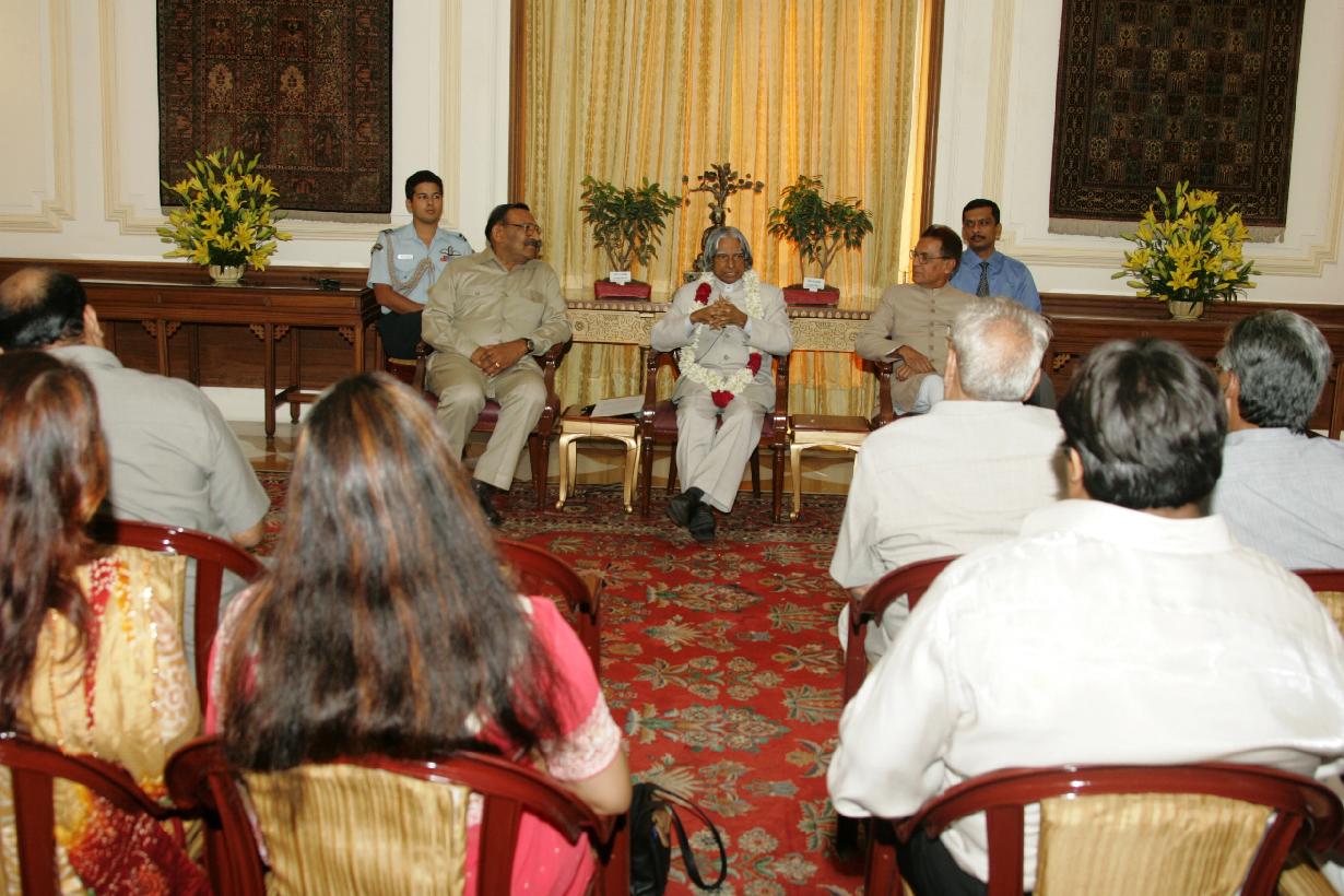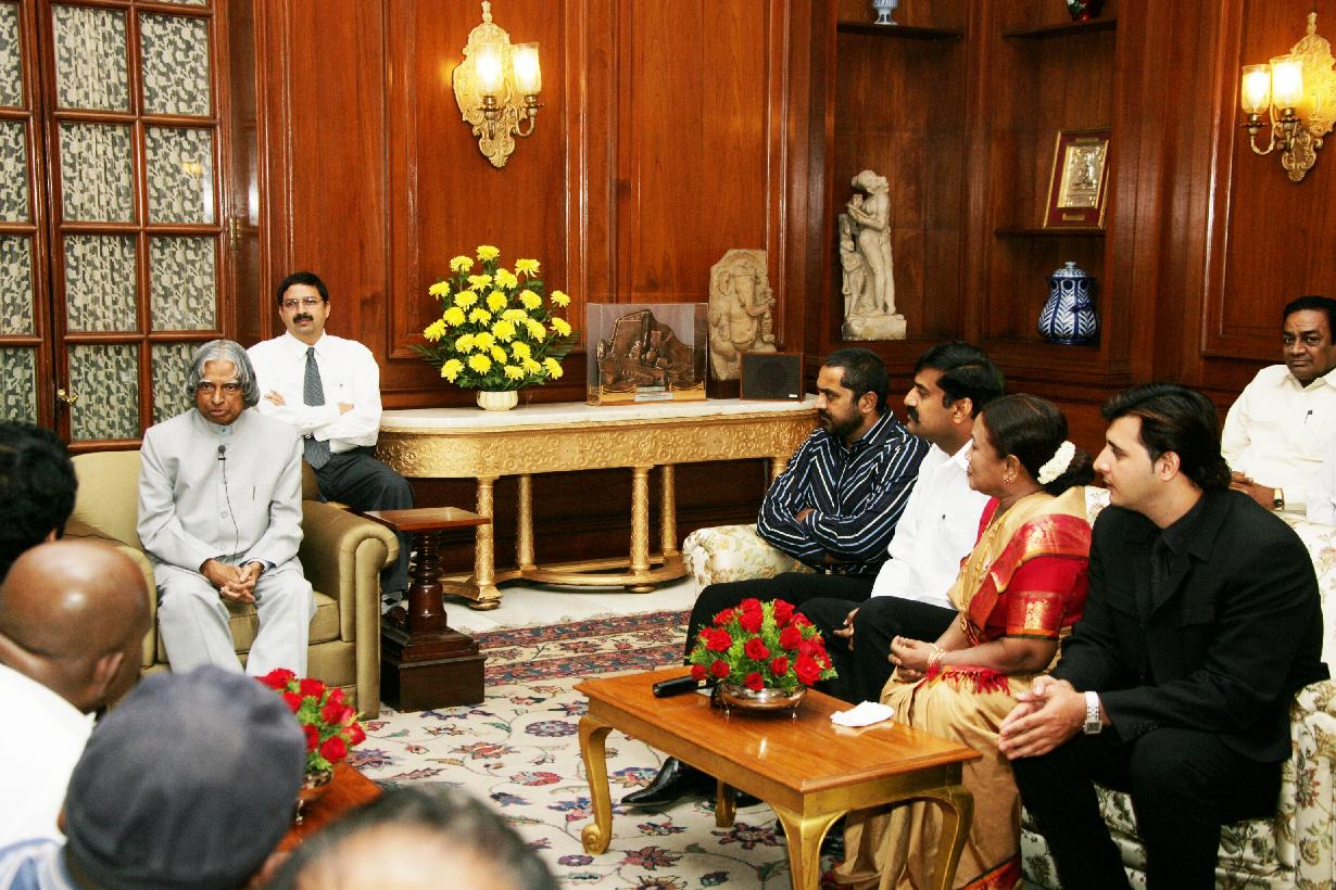 The President of India, Dr A P J Abdul Kalam meeting with the Children and the office-bearers of Times Foundation at the Yellow Drawing Room of Rashtrapati Bhavan in New Delhi on Oct 02, 2005