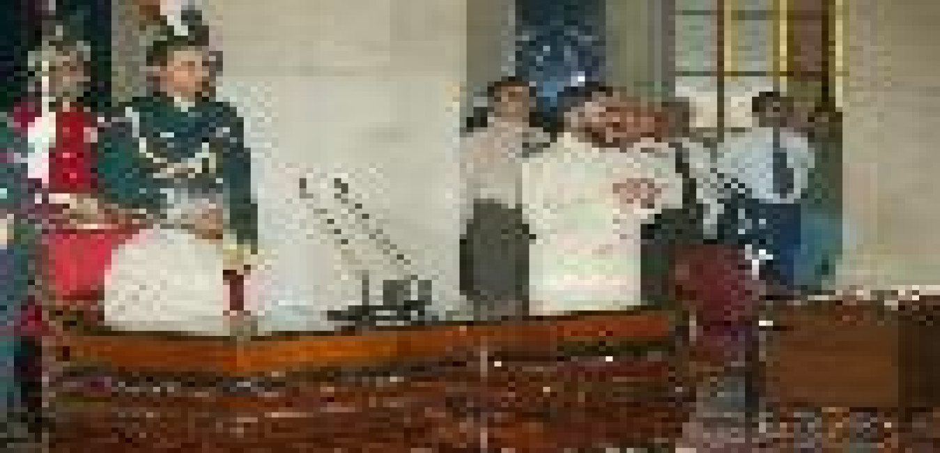 The High Commissioner-Designate of Maldives to India, HE Lt Gen Anbaree Abdul Sattar Adam presenting his credentials to the President of India, Dr A P J Abdul Kalam at the Ashok Hall of Rashtrapati Bhavan in New Delhi on Nov 30, 2004