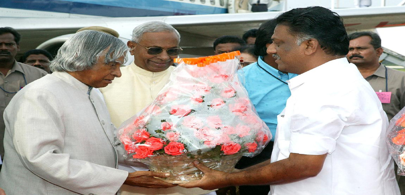 The President of India, Dr A P J Abdul Kalam being welcomed at Chennai Airport in Tamil Nadu on Oct 02, 2004