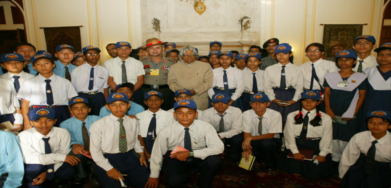 The Students from Rifles Nodal Schools from North East Region calling on the President of India, Dr A P J Abdul Kalam at the Yellow Drawing Room of Rashtrapati Bhavan in New Delhi on Oct 08, 2004