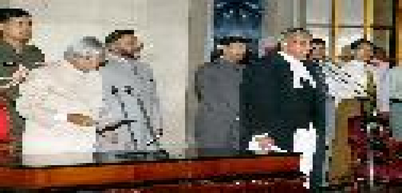 The President of India, Dr A P J Abdul Kalam administering the Oath of Office as Members of Parliament to Shri Somnath Chatterjee who is to Act as Speaker Pro-Tem of Lok Sabha at the Yellow Drawing Room of Rashtrapati Bhavan in New Delhi on June 02, 2004