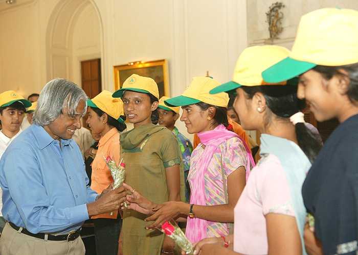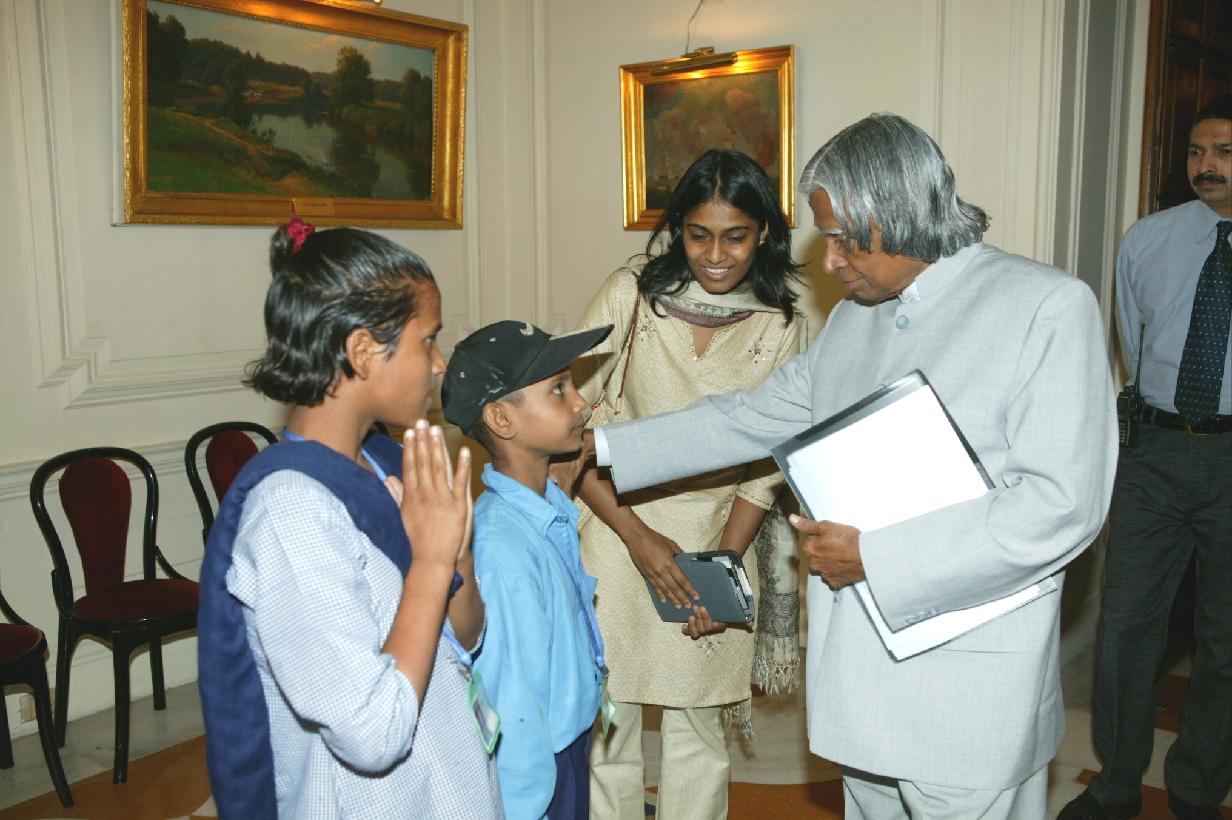 The Children from Unnati the Summer Camp organized by the Times Foundation calling on the President of India, Dr A P J Abdul Kalam at the Yellow Drawing Room of Rashtrapati Bhavan in New Delhi on June 02, 2004