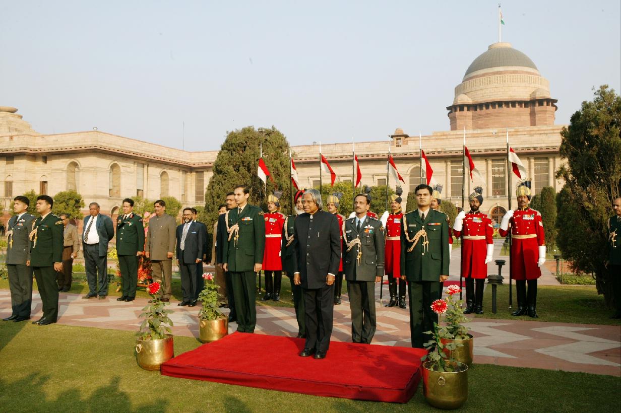 The President of India, Dr A P J Abdul Kalam being welcomed at Naval Enclave Airport, Dabolim in Goa on Jan 12, 2004