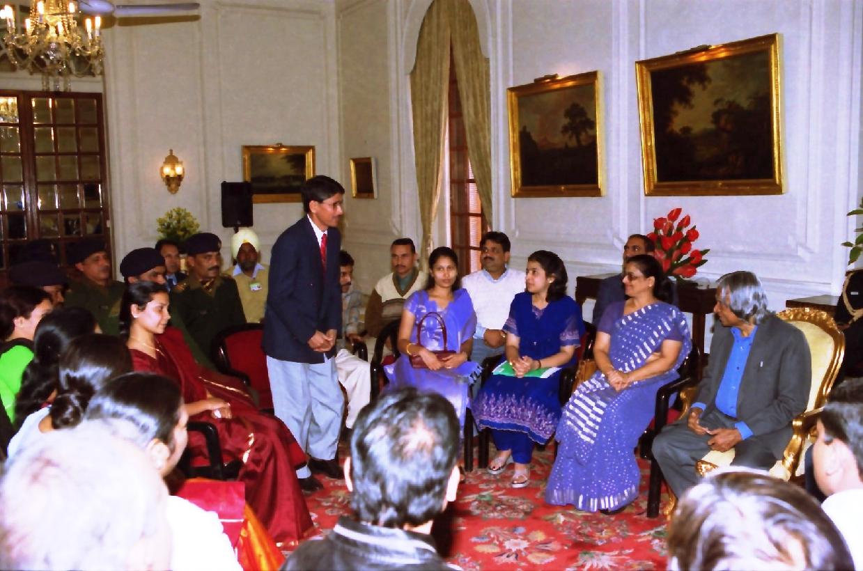 The President of India, Dr A P J Abdul Kalam with Smt Usha Ram, Principal, Laxman Public School, Shri Hari Ram, Special Children and Special Educators at Rashtrapati Bhavan in New Delhi on Dec 02, 2003