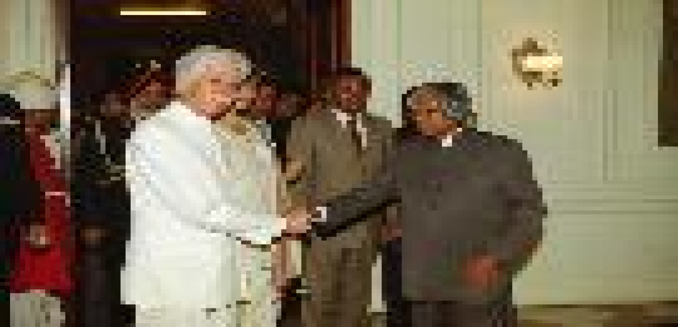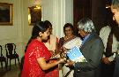 The President of India, Dr A P J Abdul Kalam presenting the Indira Gandhi Prize 2002 to the Former Secretary General of the Commonwealth, Sir Shridath Rampahal at the Ashok Hall of Rashtrapati Bhavan in New Delhi on Nov 19, 2003