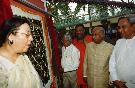 The President of India, Dr A P J Abdul Kalam being received a Book of Speeches by the Governor of Orissa, Shri M M Rajendran at Chandikhol and Nirakarapur in Orissa on May 15, 2003
