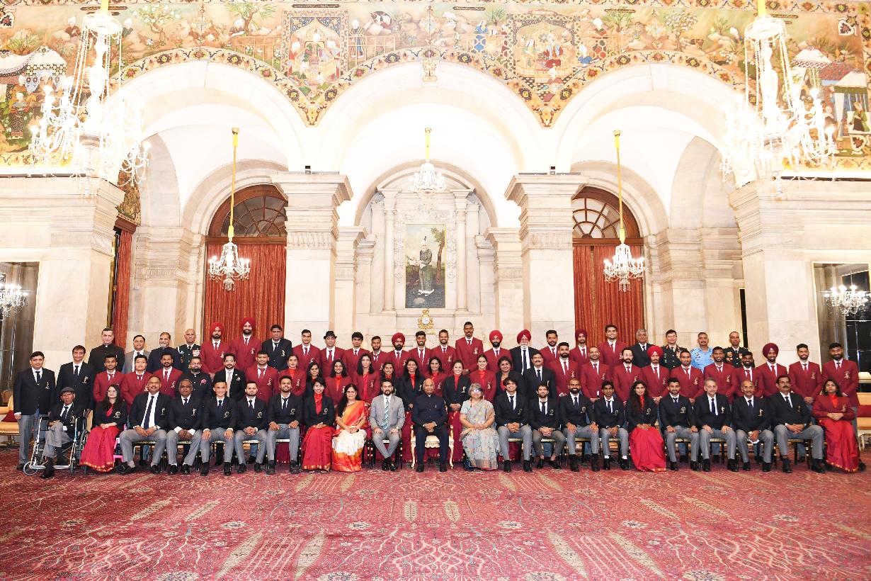 The President of India, Shri Ram Nath Kovind with the recipients of Sports and Adventure Awards-2021, at Rashtrapati Bhavan on November 13, 2021.