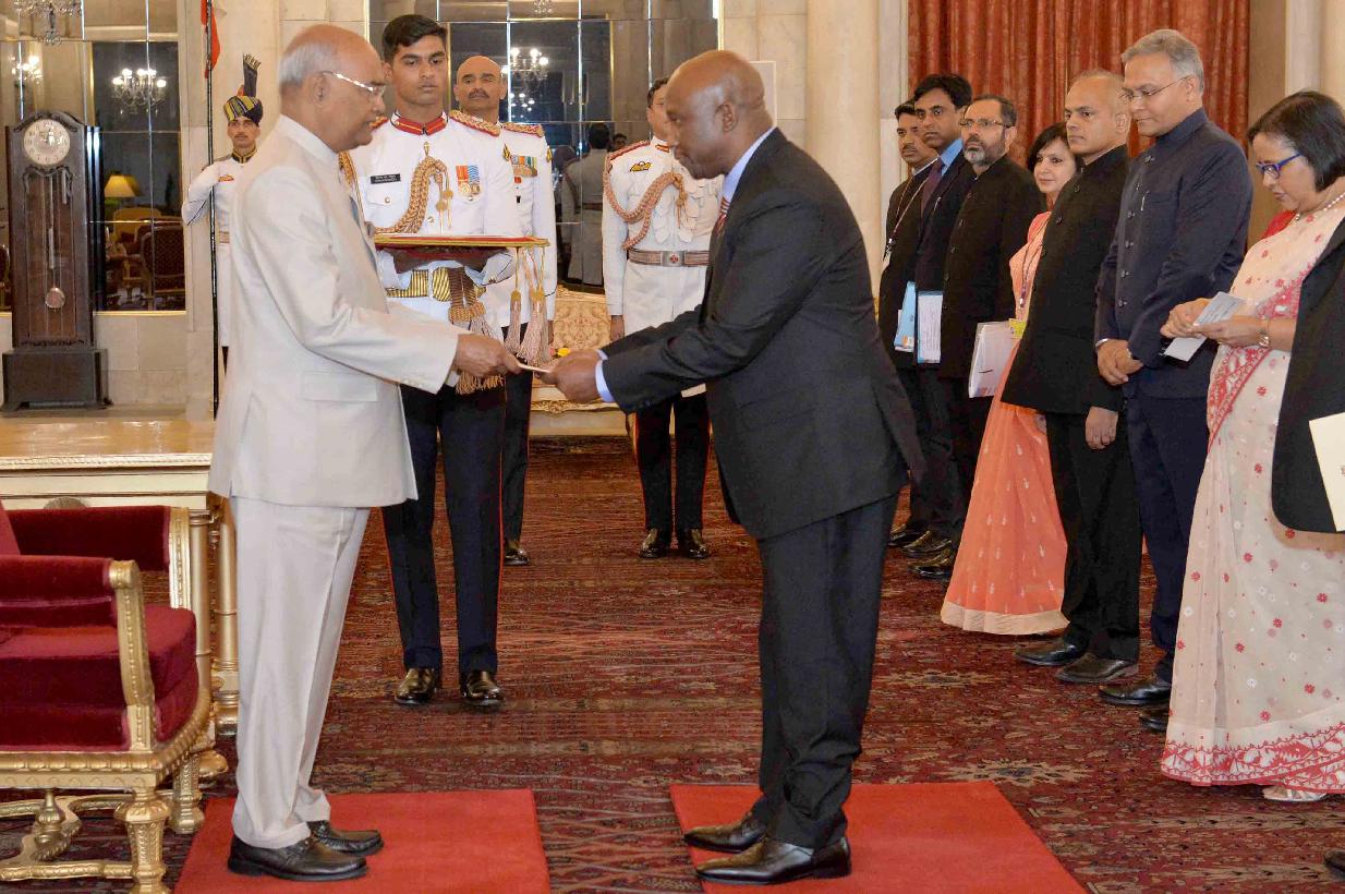 The High Commissioner-designate of the Kingdom of Lesotho, H.E. Mr. Bothata Tsikoane presenting his credentials to the President of India, Shri Ram Nath Kovind, at Rashtrapati Bhavan on May 31, 2018.