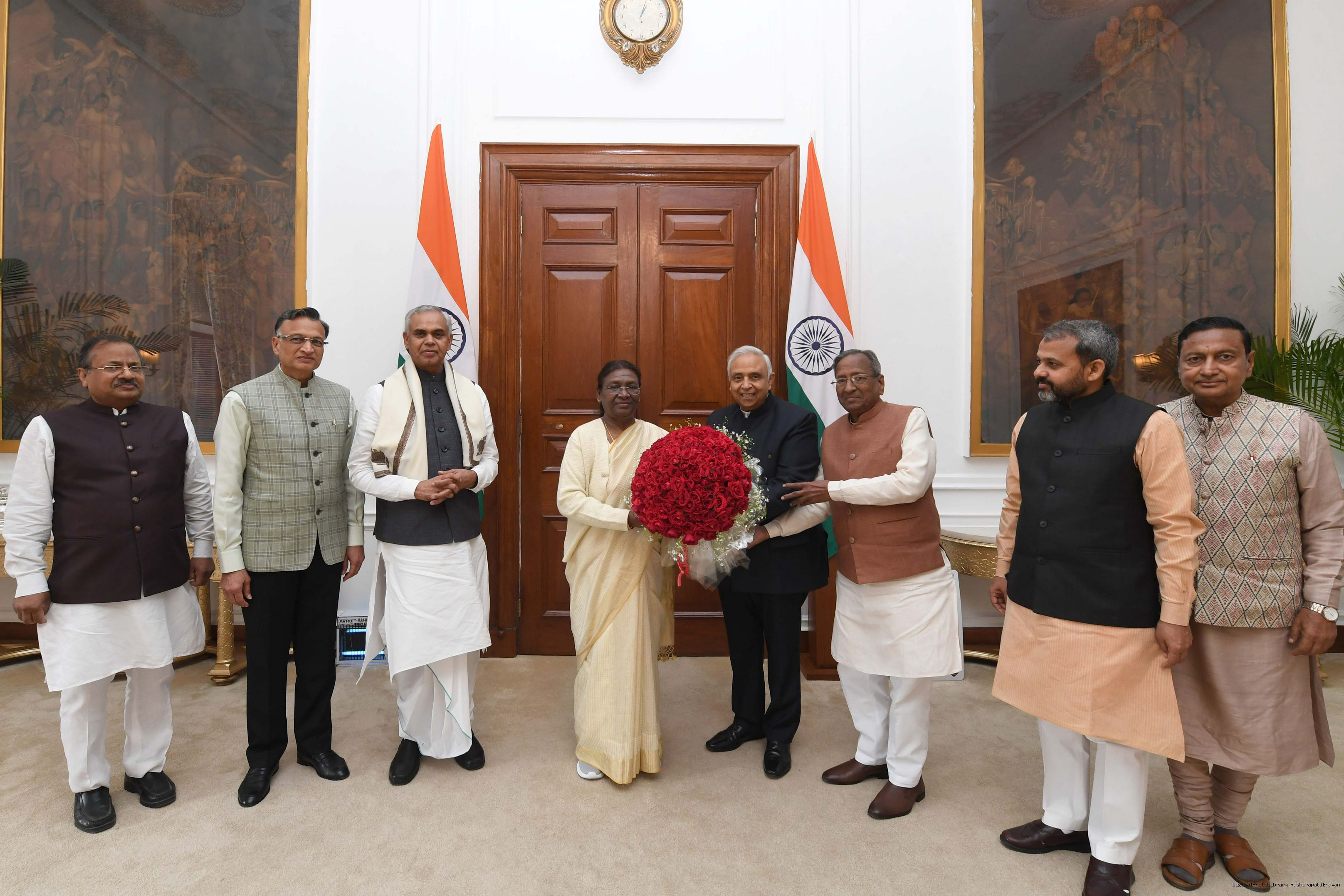 The Governor of Gujarat, Shri Acharya Devvrat along with others called on the President of India Smt. Droupadi Murmu at Rashtrapati Bhavan on December 7, 2023.