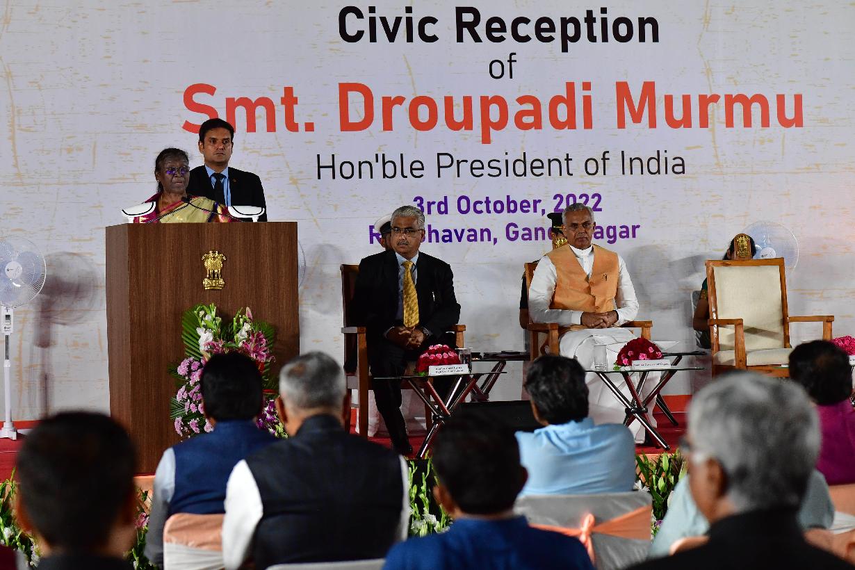 The President of India, Smt. Droupadi Murmu attended a civic reception hosted by the Government of Gujarat in her honour, in Gandhinagar on October 03, 2022.