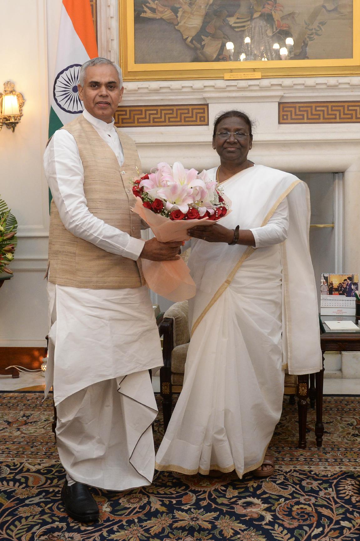 Achrya Devvrat, Governor of Gujarat meeting with the President of India, Smt. Droupadi Murmu, at Rashtrapati Bhavan on Aug 06, 2022.