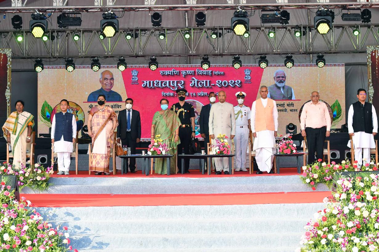 The President of India, Shri Ram Nath Kovind inaugurates Madhavpur Ghed Fair, at Madhavpur Ghed, Porbandar, in Gujarat on April 10, 2022.