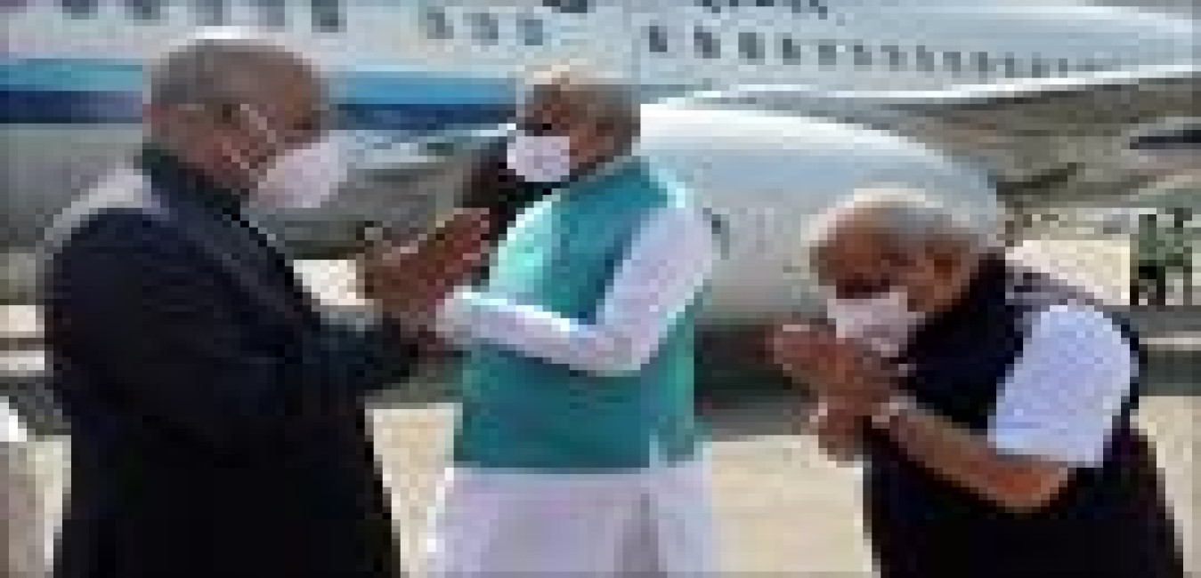 The President of India, Shri Ram Nath Kovind being received by the Governor of Gujarat, Shri Acharya Devvrat and the Deputy Chief Minister of Gujarat, Shri Nitin Patel, on his arrival, in Ahmedabad on February 23, 2021.