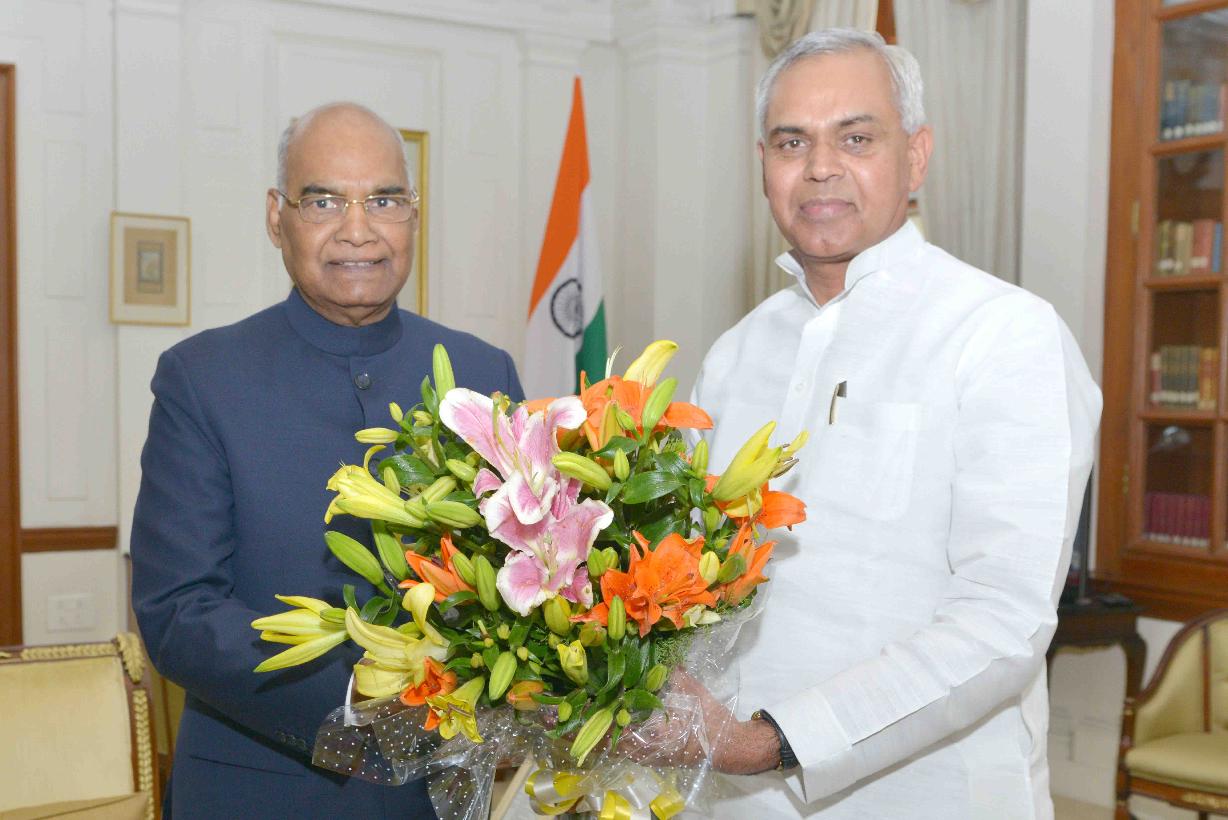 The Governor of Himachal Pradesh, Acharya Devvrat calling on the President of India, Shri Ram Nath Kovind, at Rashtrapati Bhavan on August 10, 2017