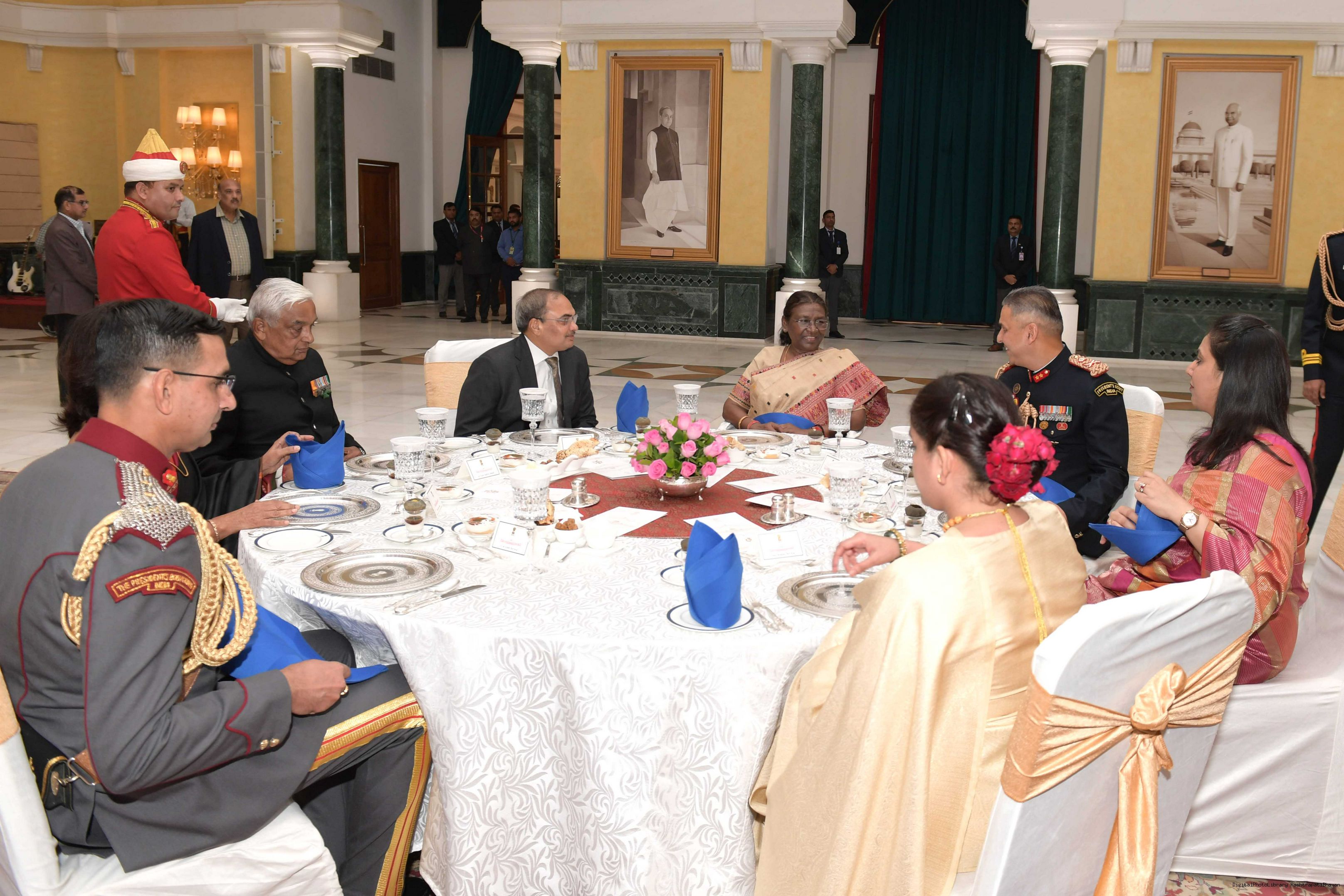 The President of India, Smt. Draupadi Murmu hosting a banquet with serving and retired officers of the PBG on the occasion of its 16th anniversary celebrations at Rashtrapati Bhavan on November 18, 2023