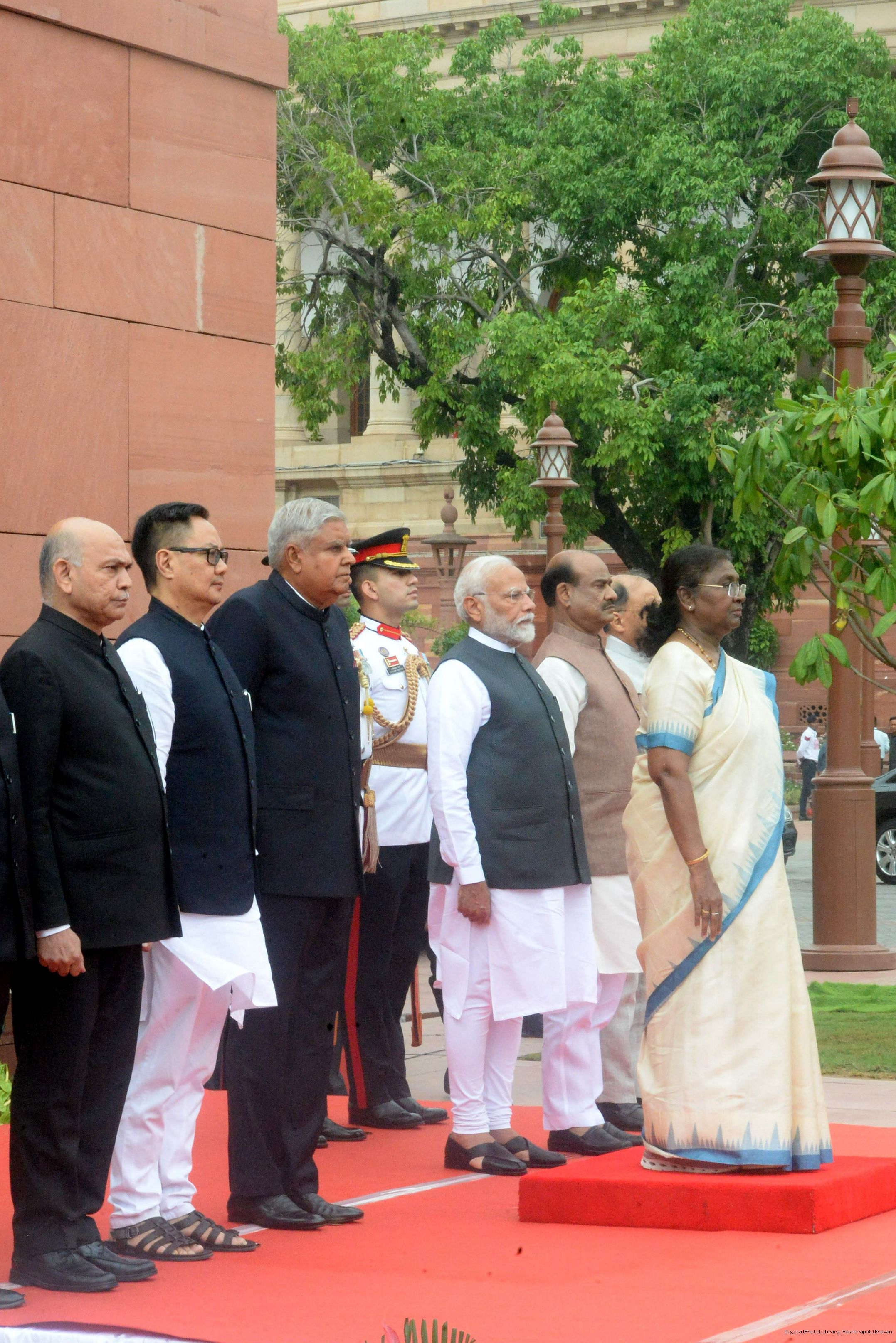 The President of India, Smt. Draupadi Murmu accompanied the procession and posed for a group photo in the Lok Sabha Chamber of Parliament House on June 27, 2024.