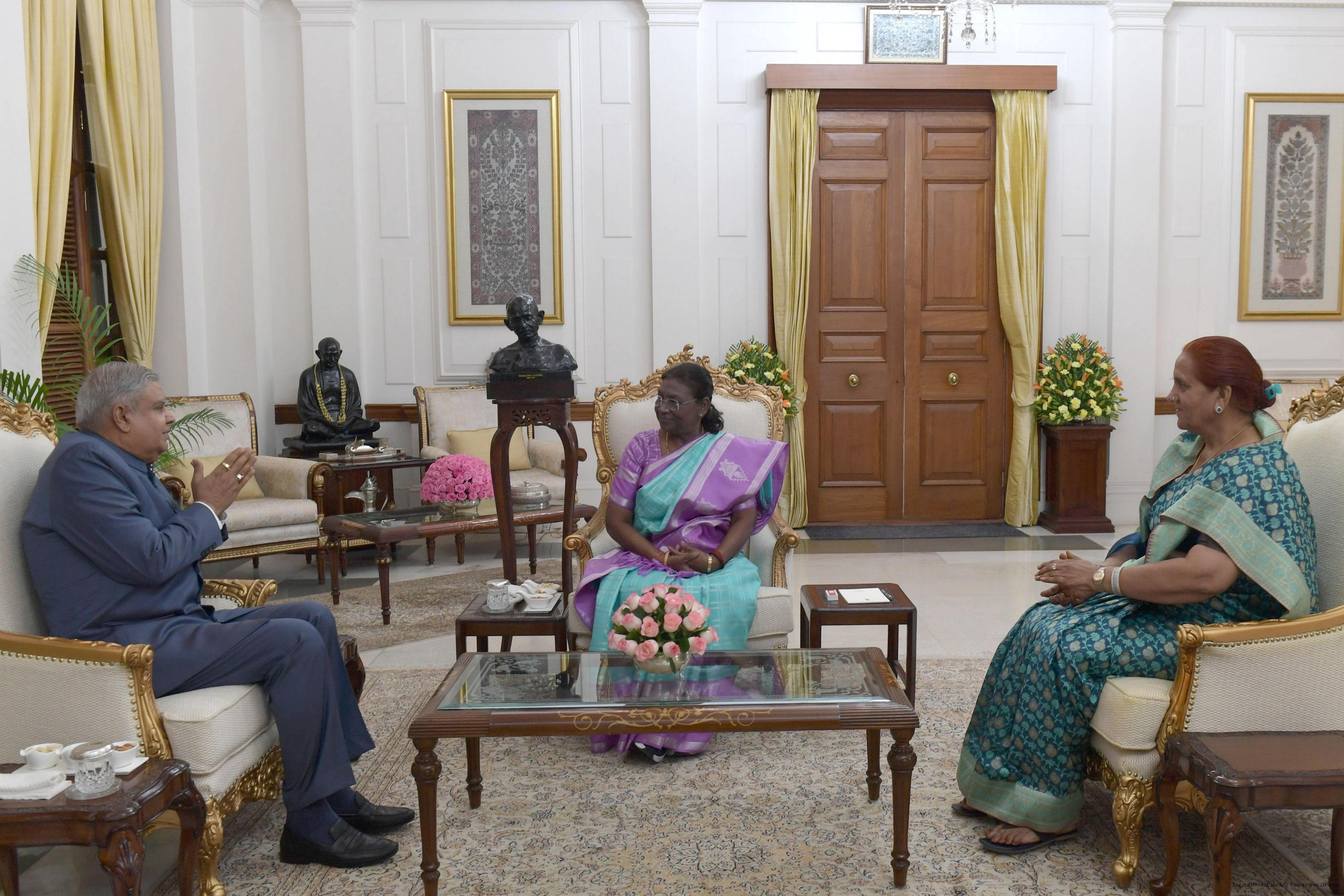 Shri Jagdeep Dhankhar, Vice-President of India along called on the President of India Smt. Droupadi Murmu at Rashtrapati Bhavan on November 12-11-2023