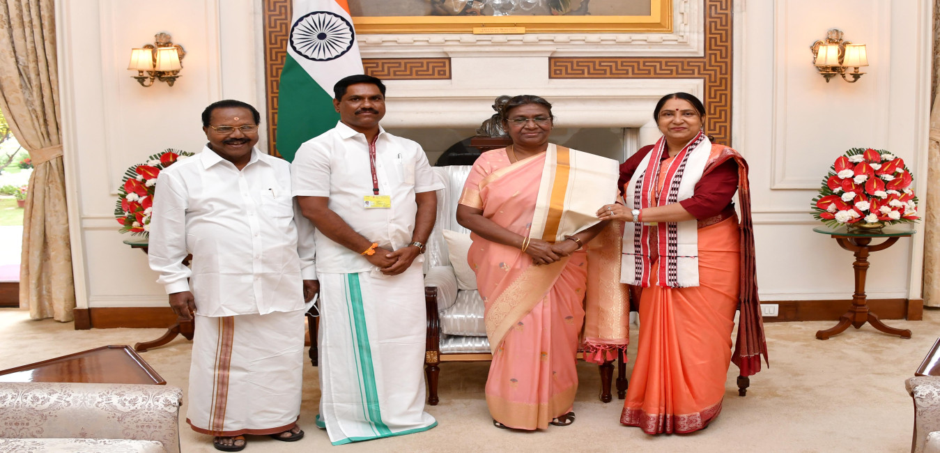 Shri M. Venkatesan, Chairman along with Smt. Anjana Pawar, Vice-Chairman and Dr. P.P. Vava, Member, National Commission for Safai Karamcharis Meeting with the President of India Smt. Droupadi Murmu at Rashtrapati Bhavan on April 03, 2023