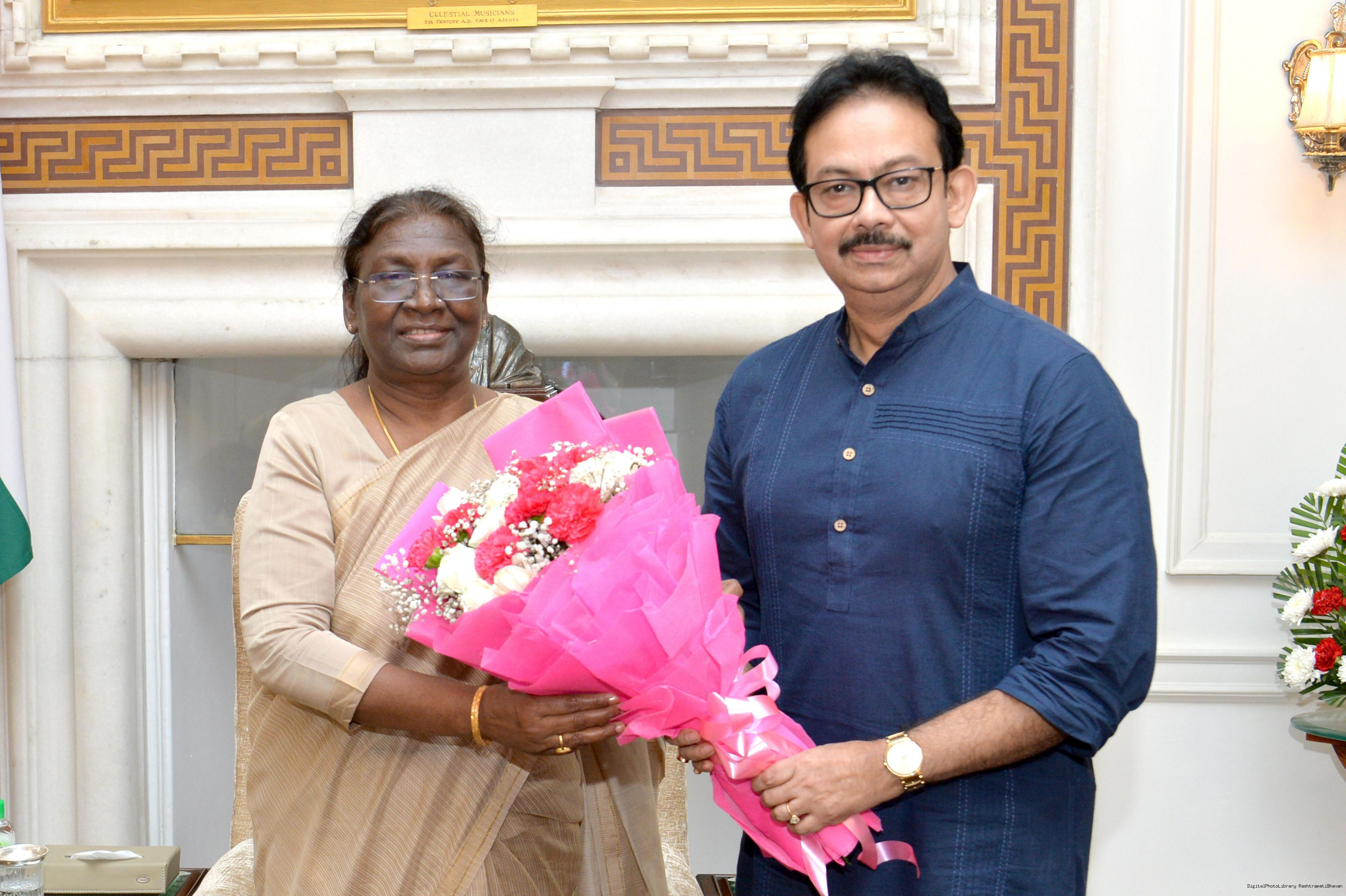 Prof. Pradip Bhattacharya, MP (RS) along with other meeting with the President of India, Smt. Droupadi Murmu, at Rashtrapati Bhavan on Aug 24, 2022.