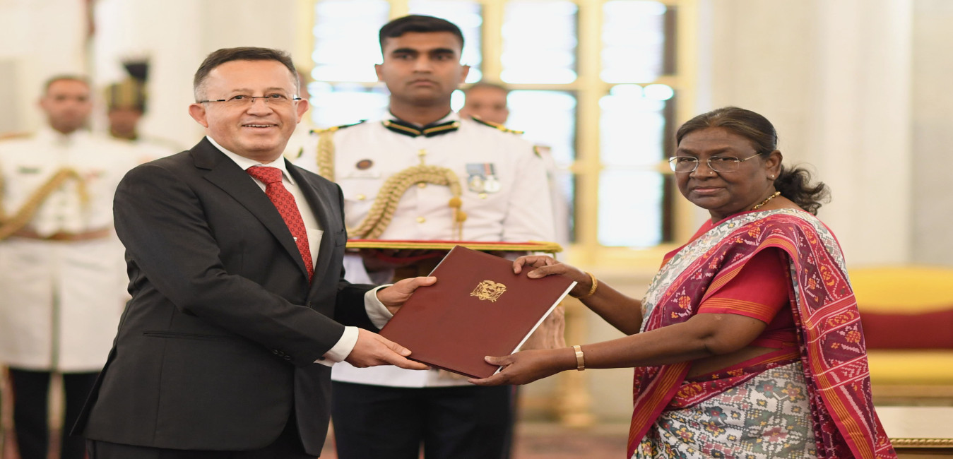 The Ambassador-designate of the People's Republic of China, H.E. Mr Xu Feihong presenting his credentials to the President of India, Smt Droupadi Murmu at a ceremony held at Rashtrapati Bhavan on May 31, 2024.