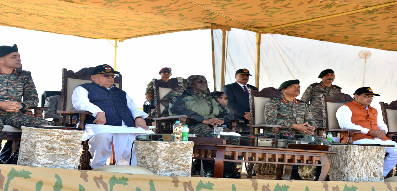The President of India Smt. Droupadi Murmu witnessed the Integrated Fire Power exercise conducted by India Army at Pokhran in Rajasthan on December 23, 2023.