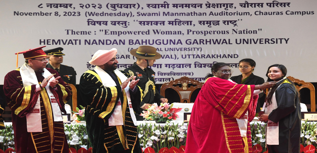 The President of India, Smt Droupadi Murmu graced and addressed the 11th convocation of Hemvati Nandan Bahuguna Garhwal University at Srinagar (Garhwal) on November 8, 2023.