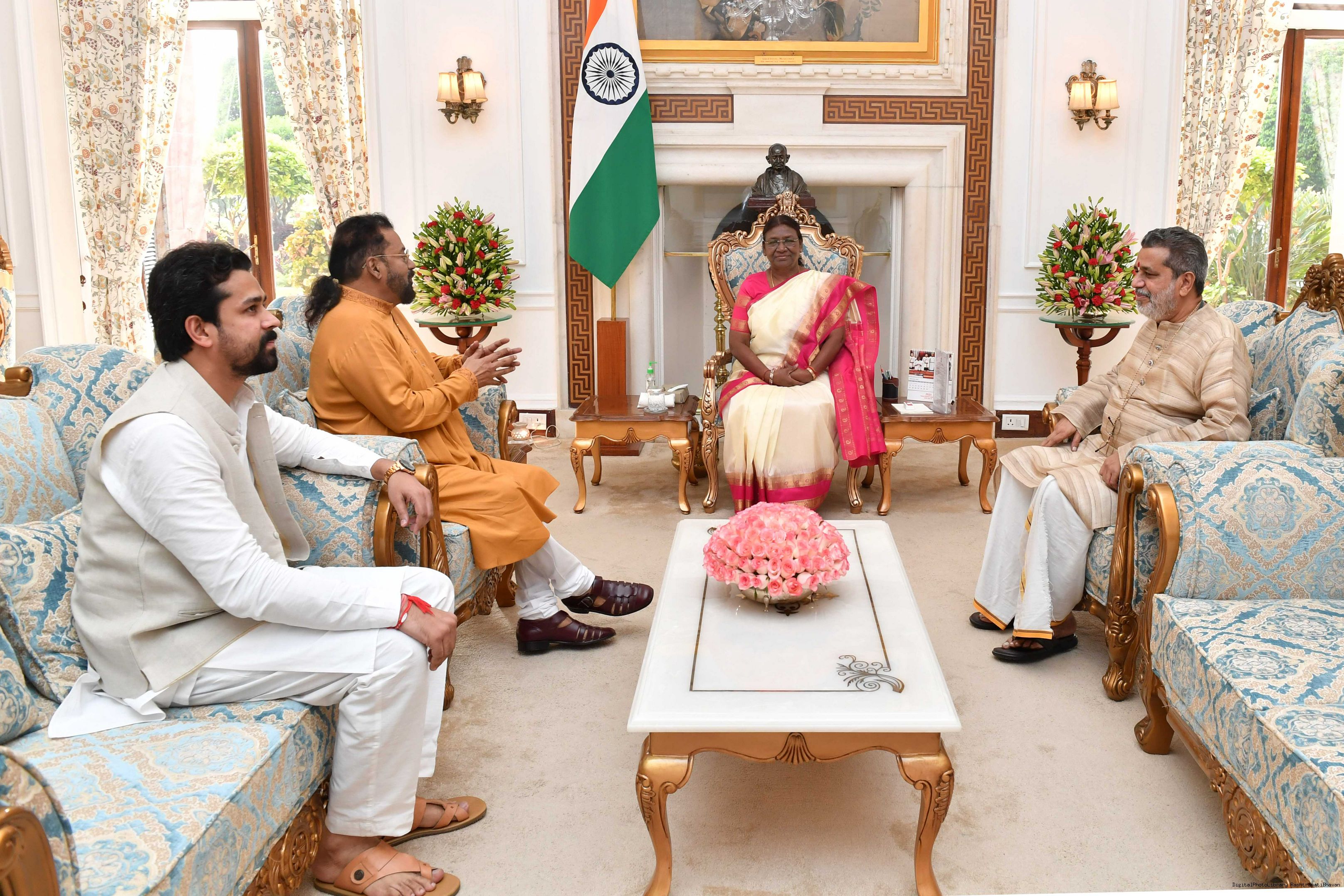 Shri Hari Haran, Padma Shri Awardee along with others meeting with the President of India, Smt. Droupadi Murmu at Rashtrapati Bhavan on September 14, 2023.