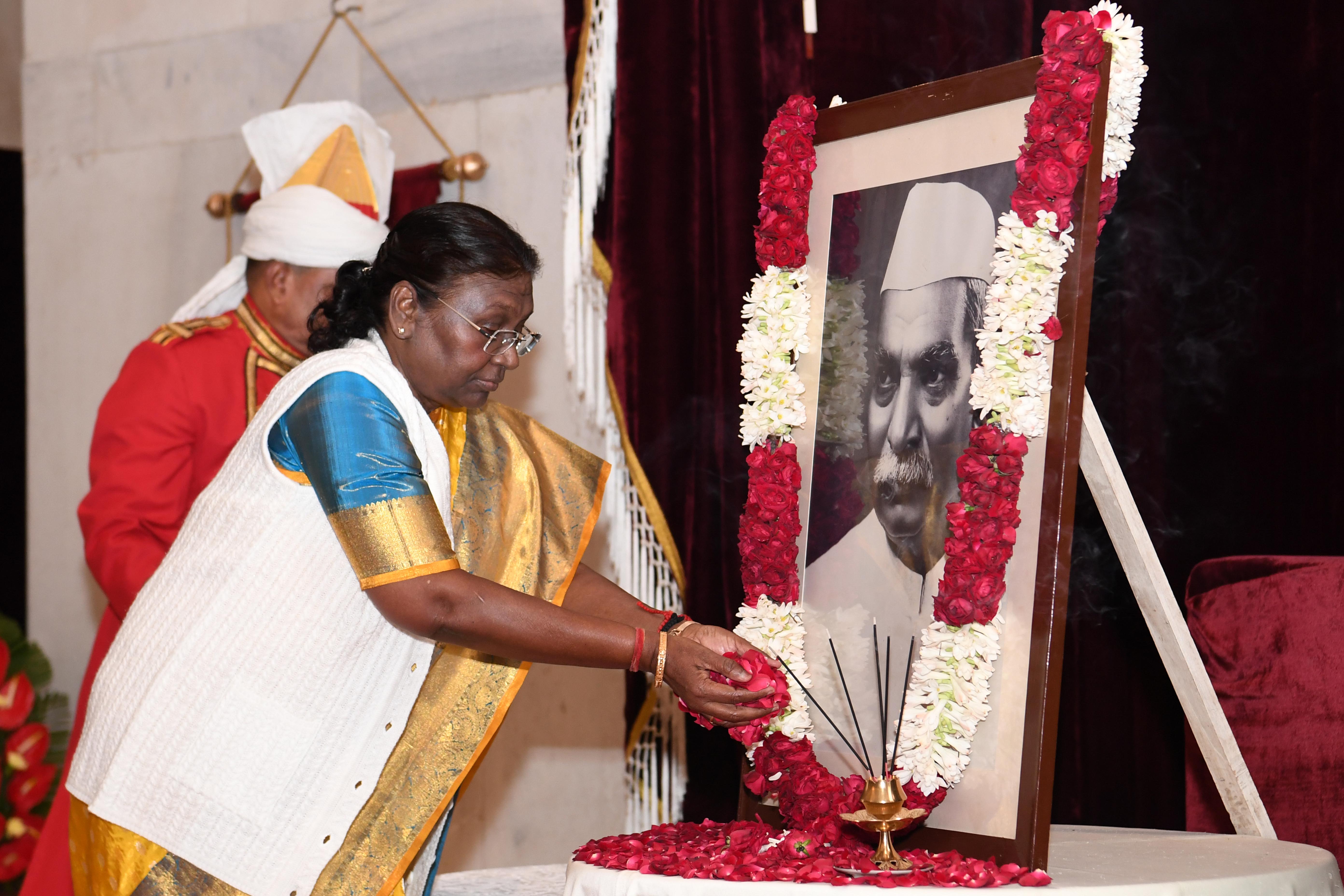 The President of India, Smt The President of India, Smt Droupadi Murmu paid floral tributes to Dr Rajendra Prasad, the first President of India on his birth anniversary at Rashtrapati Bhavan on December 3, 2023.