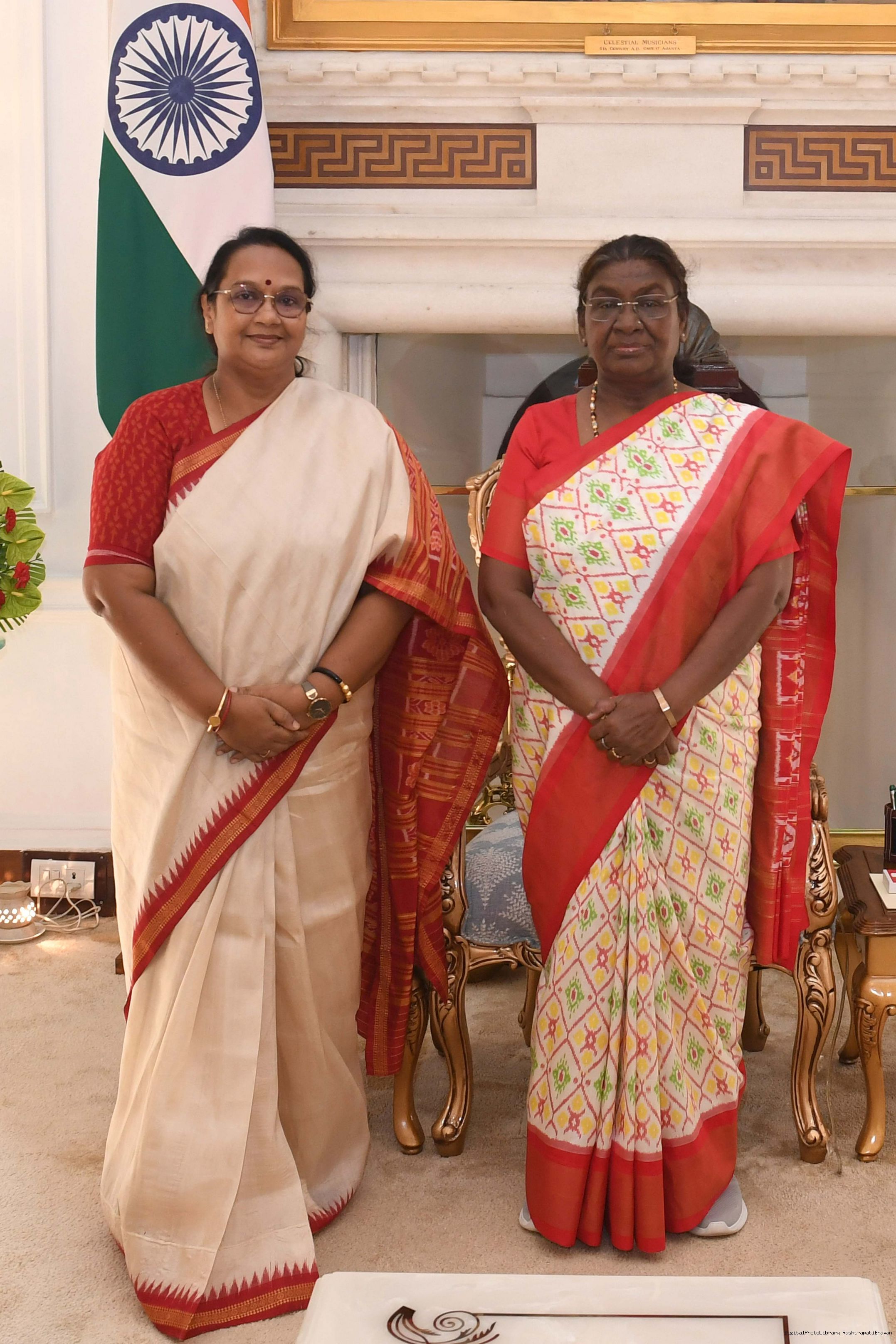 Dr. Rina Routray, Chairperson, Mahila Atmanirbhar Abhiyan Odisha meeting with the President of India Smt Droupadi Murmu at Rashtrapati Bhavan on September 23, 2024.