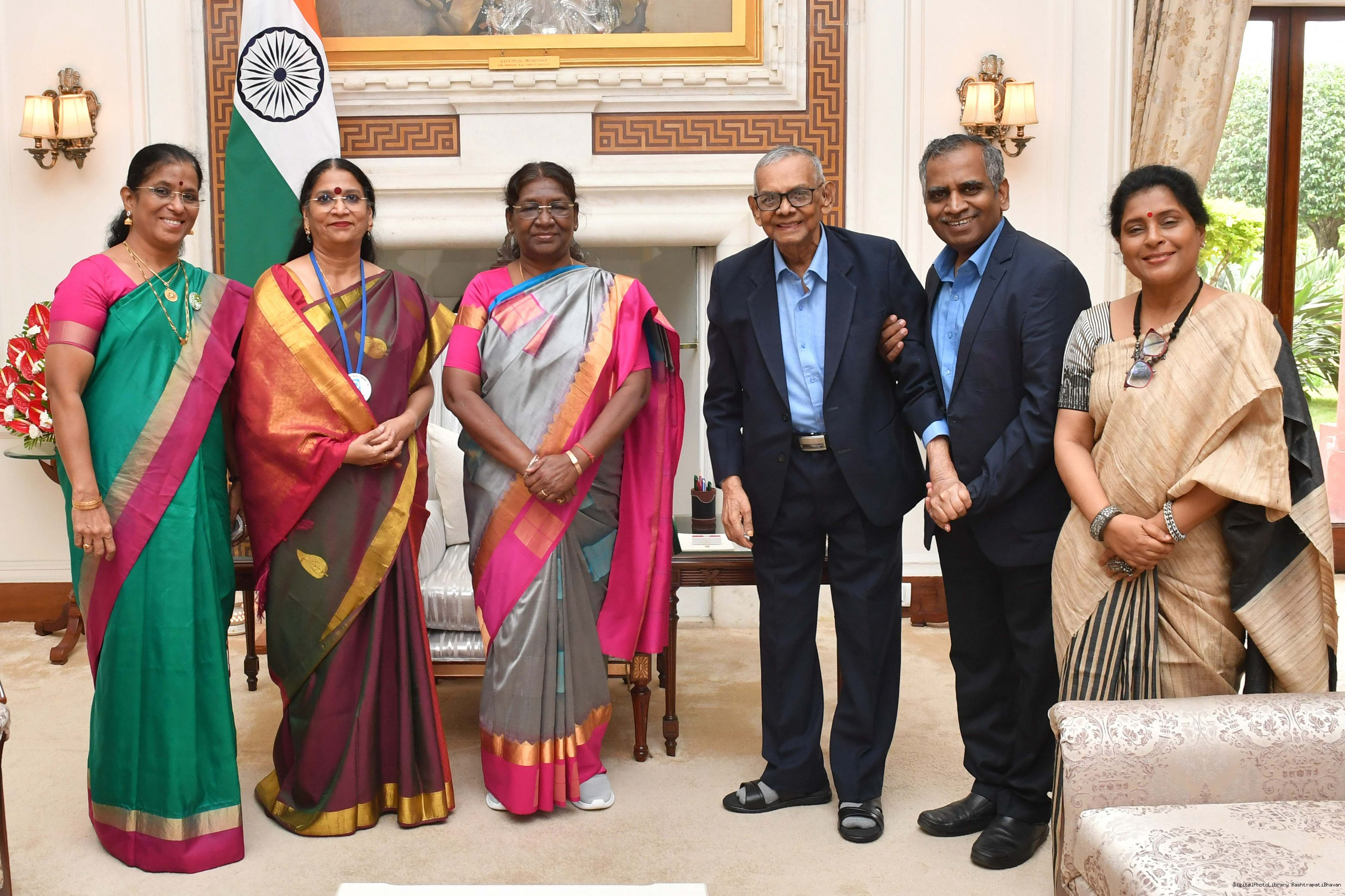 Dr. ARK Pillai, Founder, Indian Development Foundation, Mumbai along with others meeting with the President of India, Smt. Droupadi Murmu at Rashtrapati Bhavan on August 09, 2023.