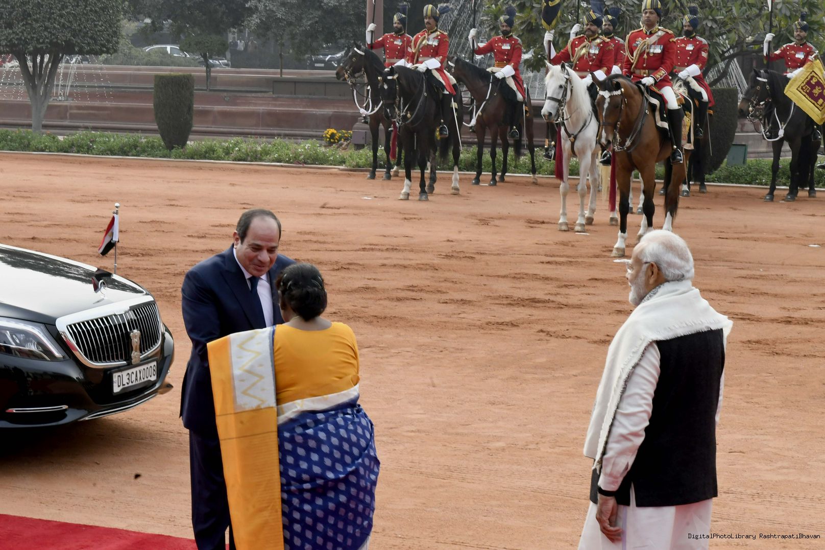 The President of India, Smt. Droupadi Murmu accorded a ceremonial welcome to the President of Egypt, His Excellency Abdel Fattah El-Sisi, at Rashtrapati Bhavan on January 25, 2023.