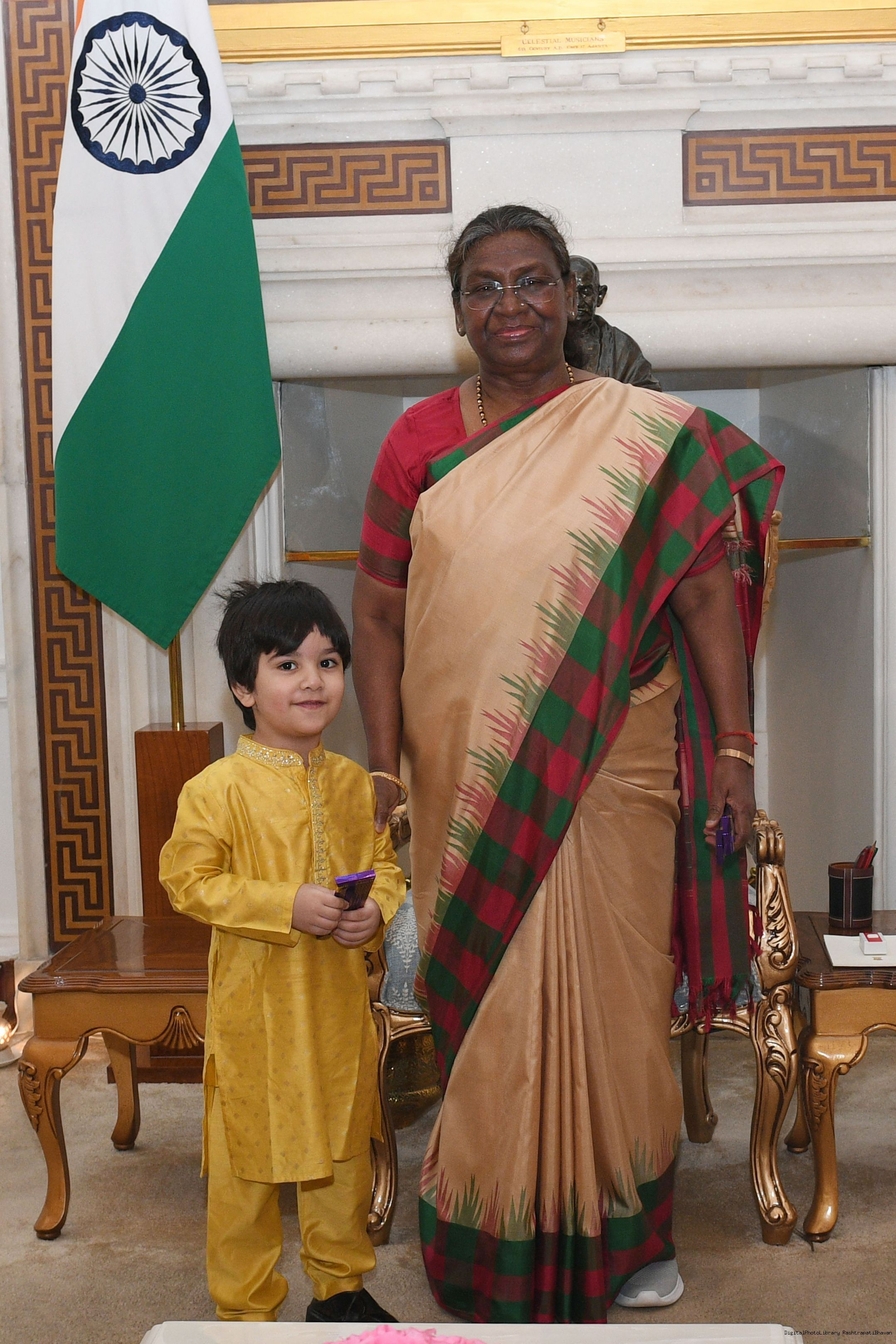 Acharya Shailesh Tiwary, Vedic Astrologer and Sadhak along with others meeting with the President of India Smt Droupadi Murmu at Rashtrapati Bhavan on April 16, 2024.