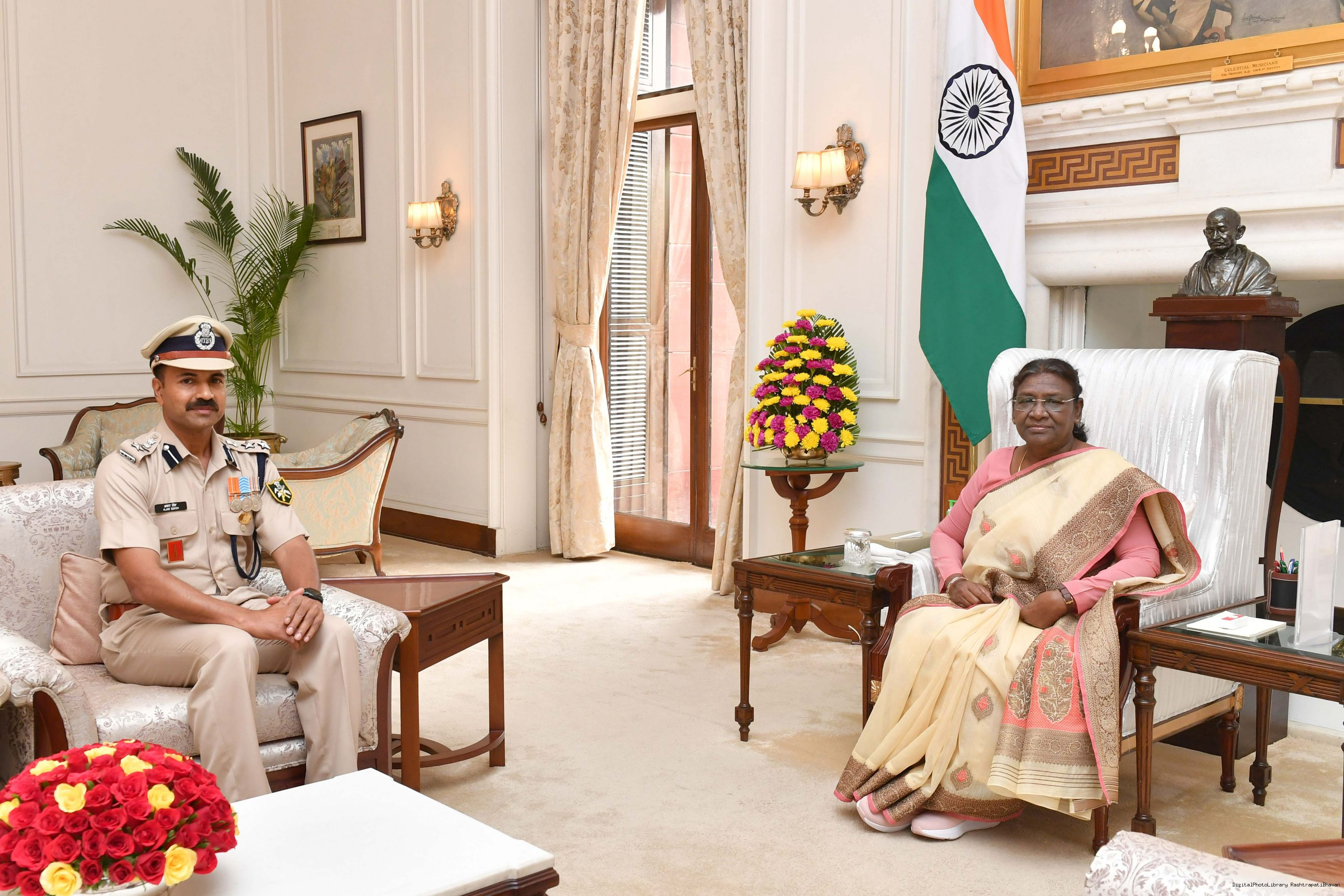 Shri Ajay Singh, Commandant, ITBP, Rashtrapati Bhavan meeting with the President of India Smt. Droupadi Murmu at Rashtrapati Bhavan on June 23, 2023.