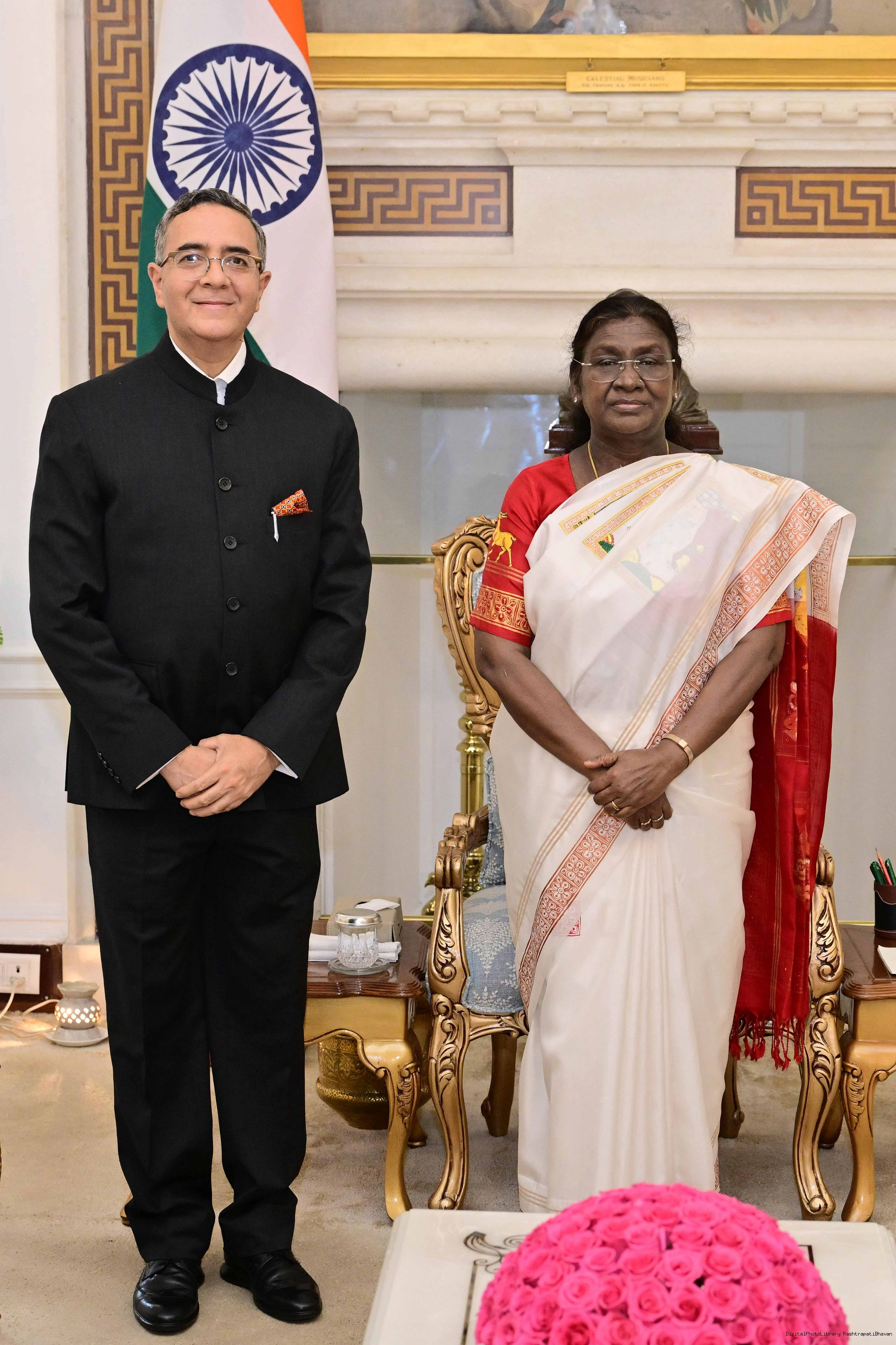 The Ambassador-Designate of India to Germany, Shri Ajit Gupta meeting the President of India, Smt Droupadi Murmu at Rashtrapati Bhavan on August 27, 2025.