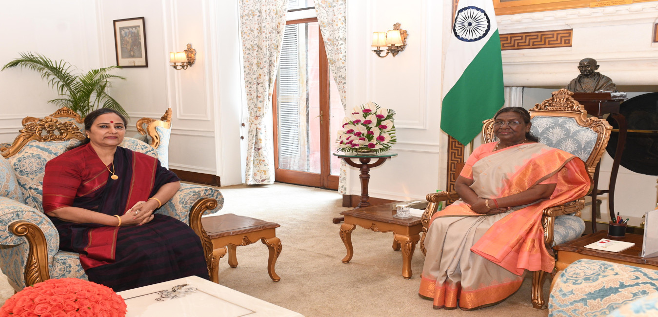 Prof. Alpana Kateja, Vice Chancellor, University of Rajasthan, Jaipur meeting with the President of India Smt Droupadi Murmu at Rashtrapati Bhavan on May 15, 2024.