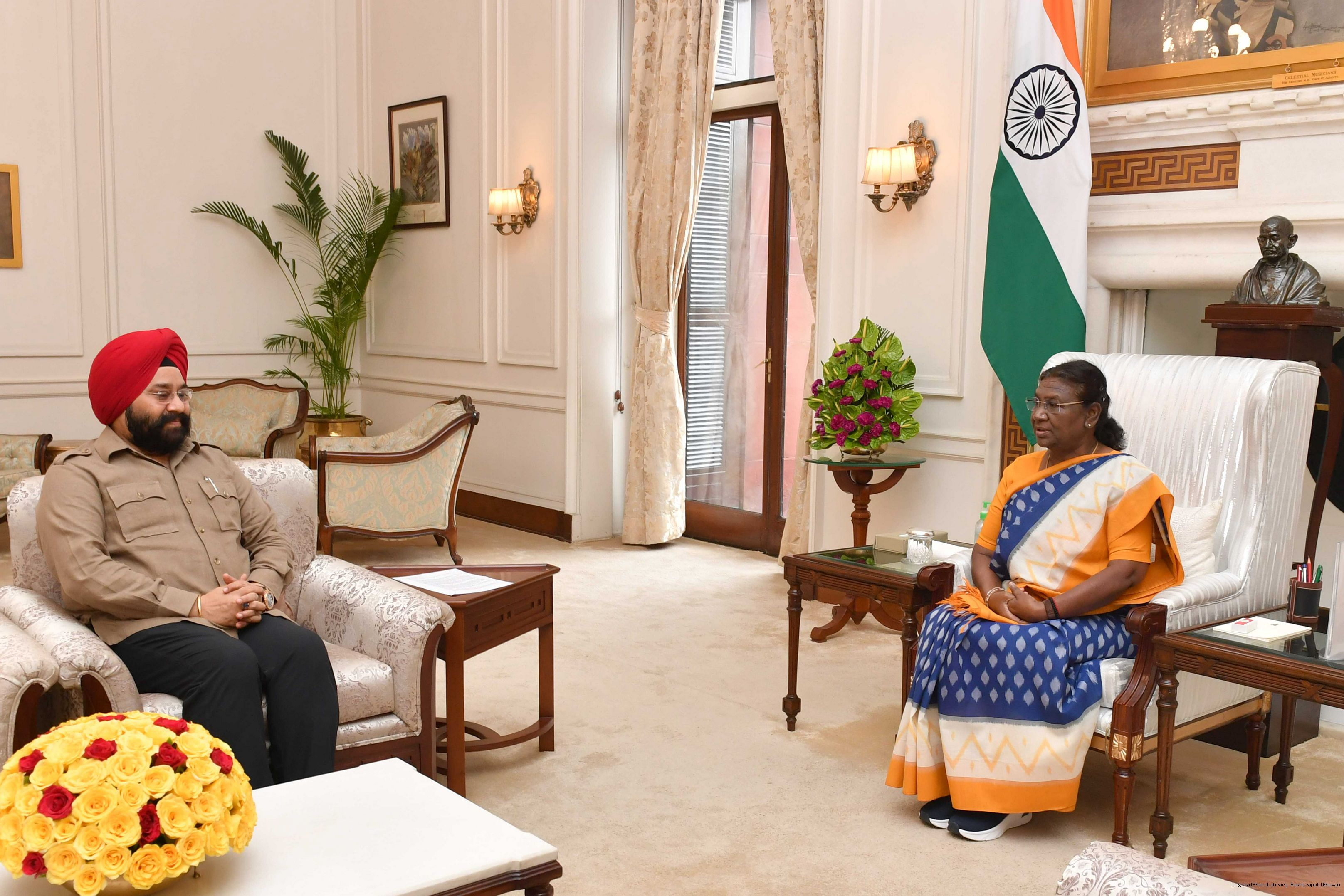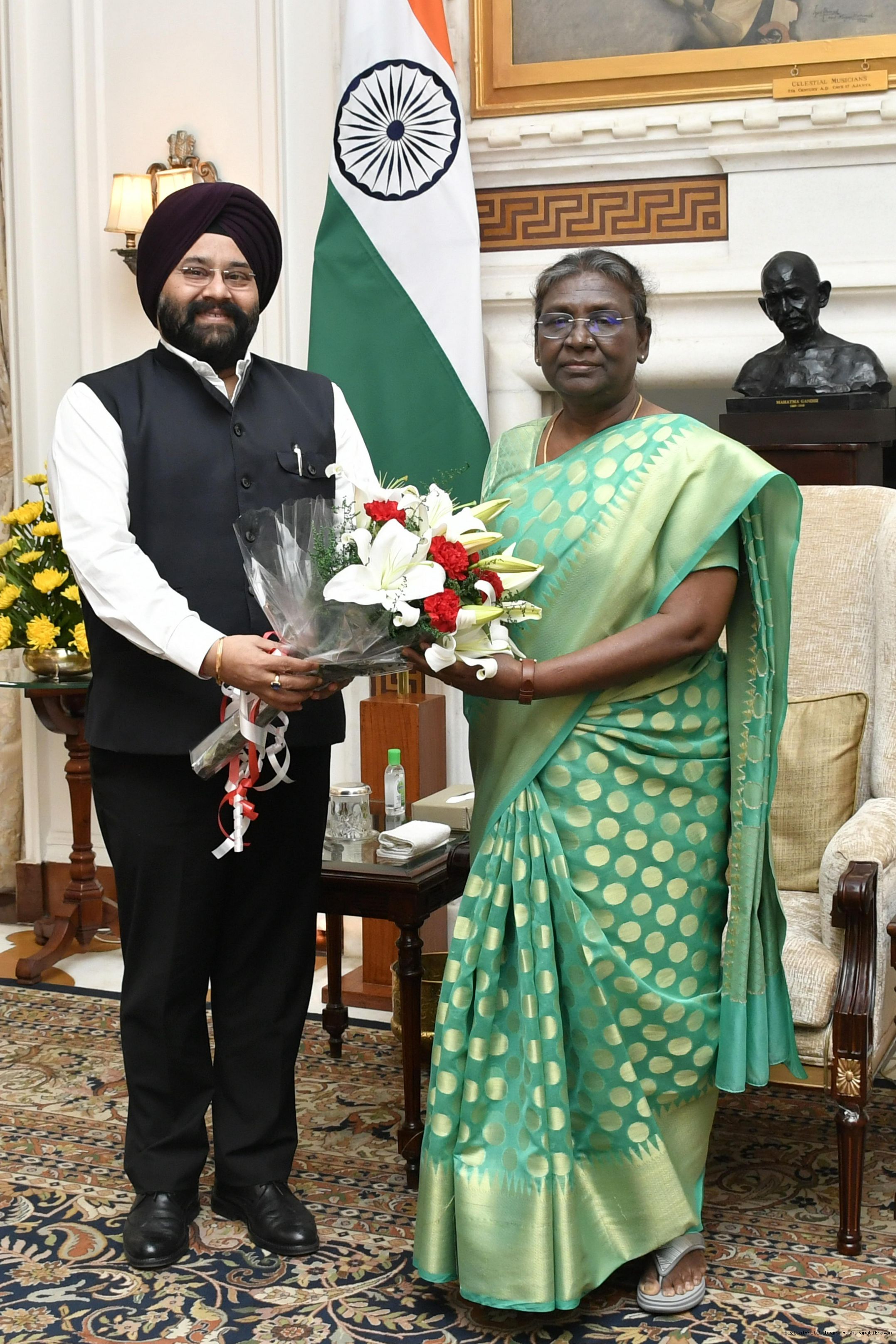 Shri Amarpreet Singh Kale, Ex. State Spokesperson, BJP, Jharkhand meeting with the President of India, Smt. Droupadi Murmu, at Rashtrapati Bhavan on Oct 21, 2022.