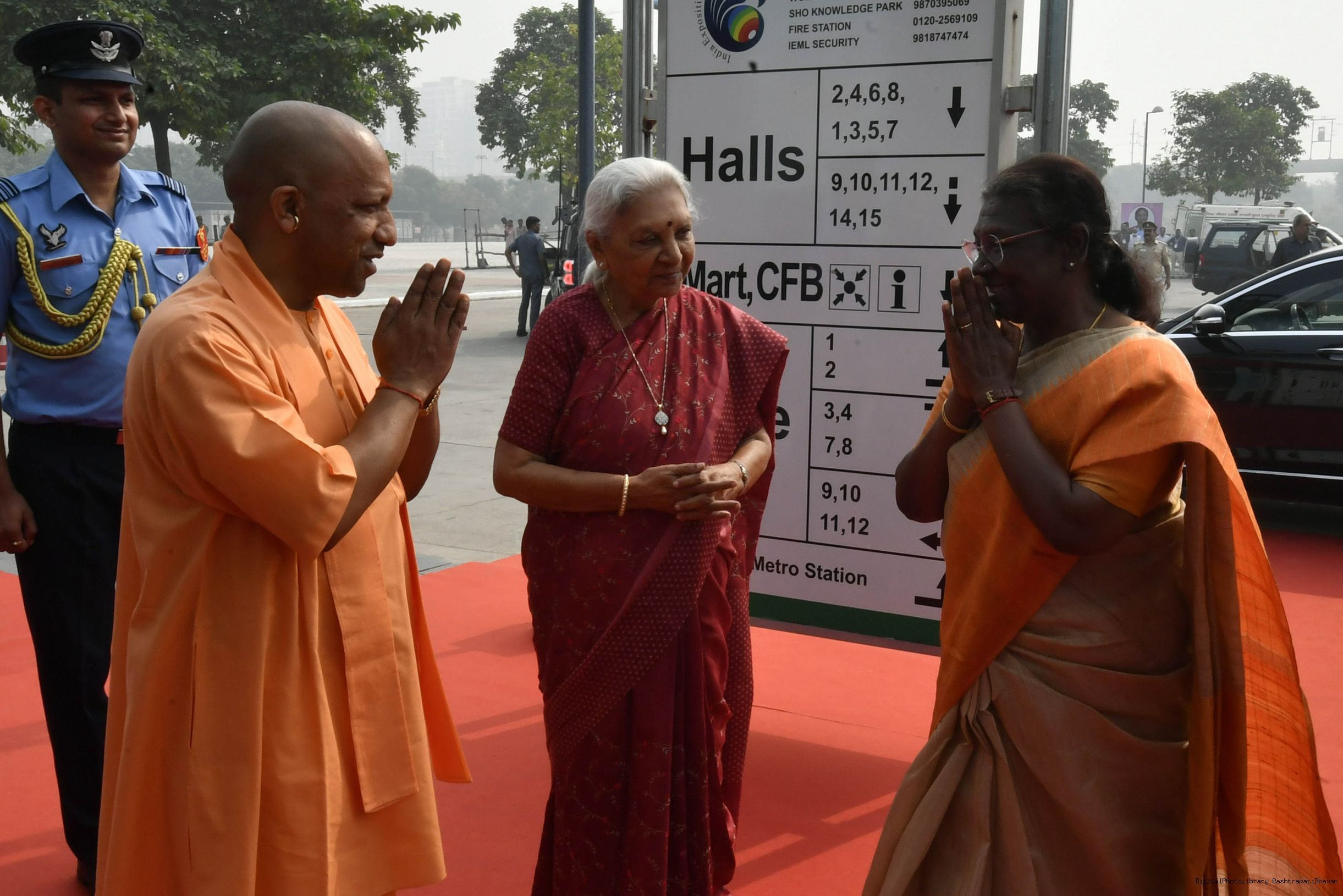 The Governor of Uttar Pradesh, Smt. Anandiben Patel and the Chief Minister, Shri Yogi Adityanath received the President of India, Smt. Droupadi Murmu on her arrival, at Lucknow on February 12, 2023. The President was accorded a guard of honour on her first visit to Uttar Pradesh.