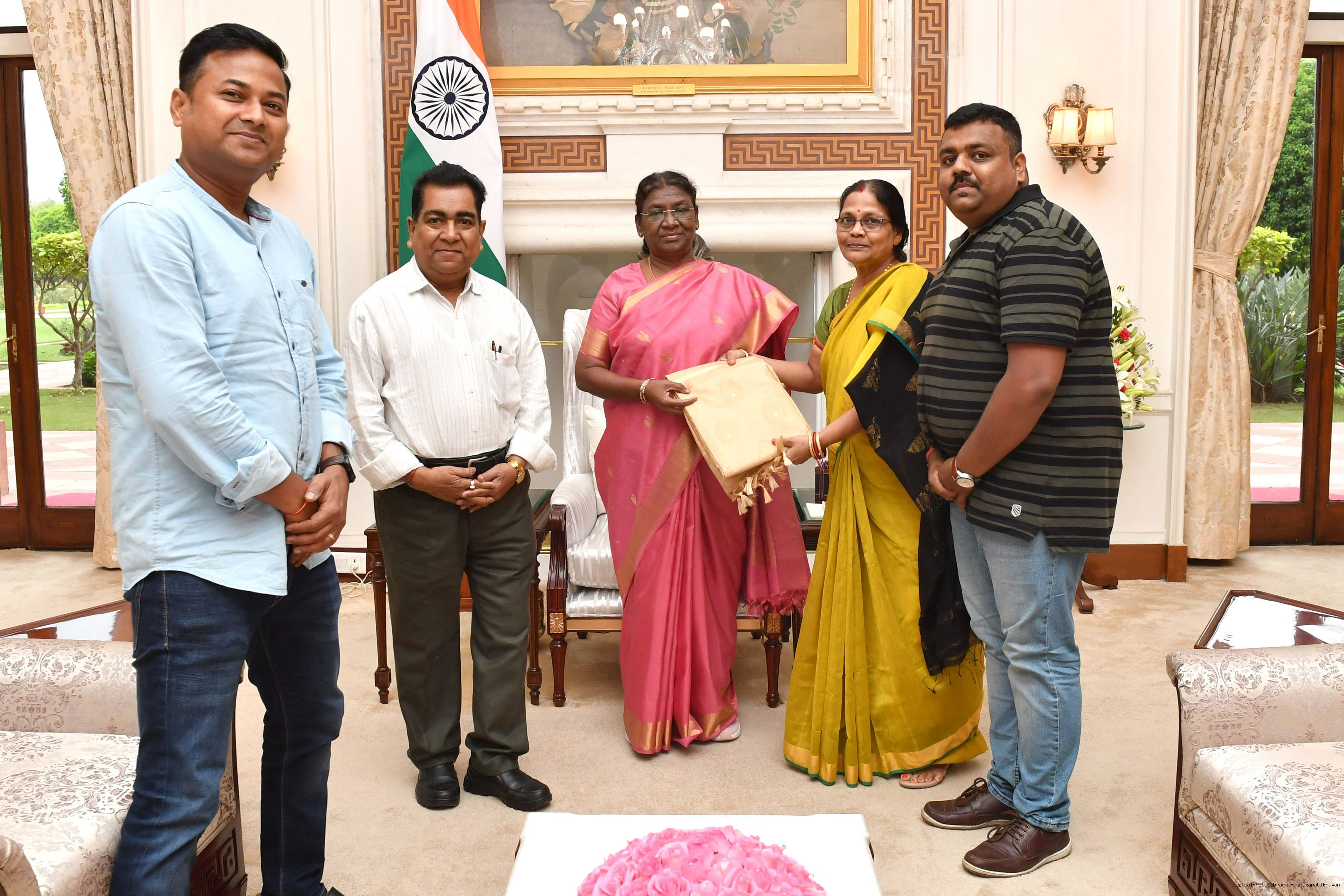 Shri Ananta Kumar Mohapatra, Advocate Orissa High Court, Cuttack along with others meeting with the President of India, Smt. Droupadi Murmu at Rashtrapati Bhavan on June 28, 2023.