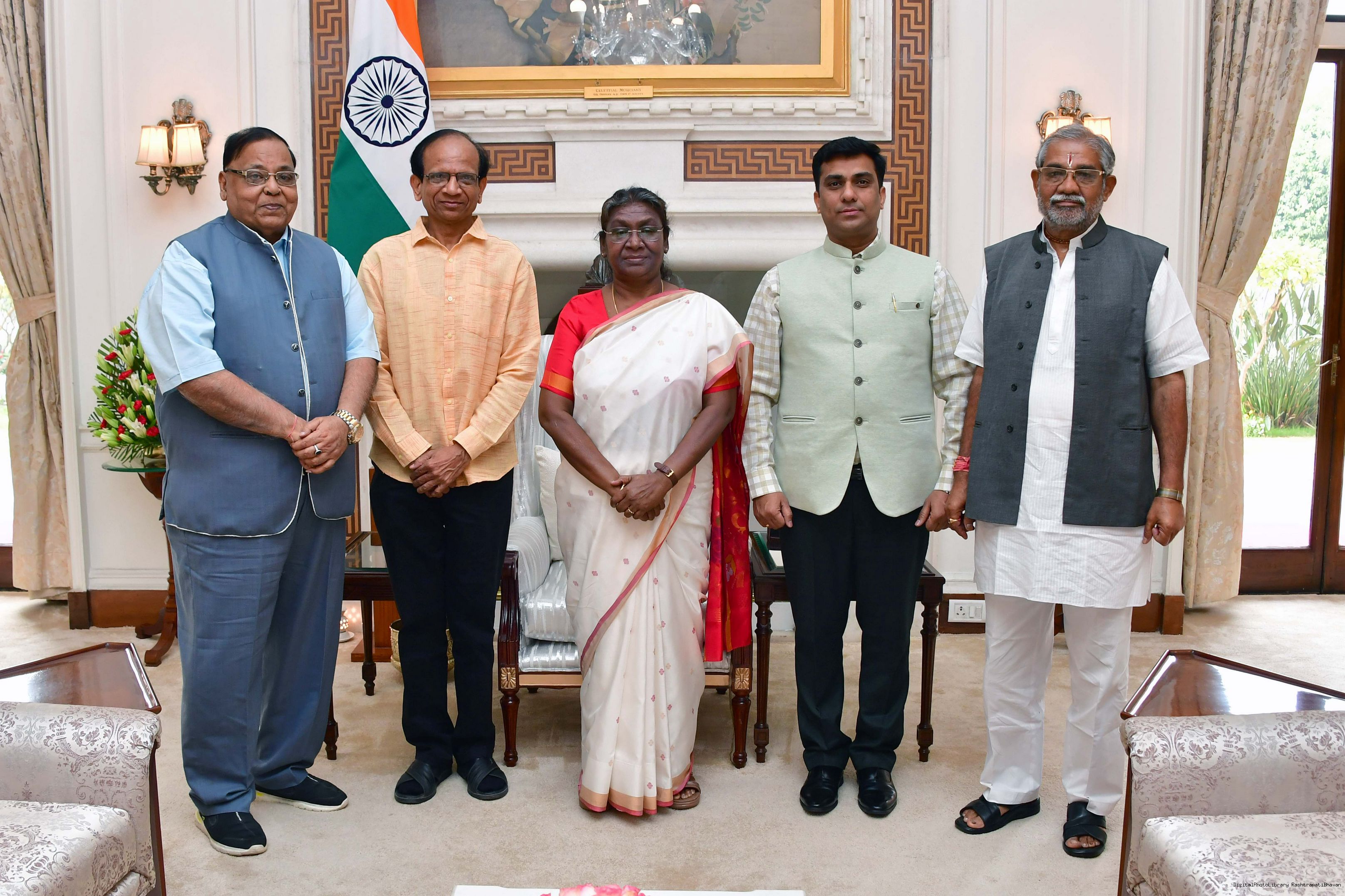 Shri Anil Bokli along with others meeting with the President of India, Smt. Droupadi Murmu, at Rashtrapati Bhavan on March 22, 2023.