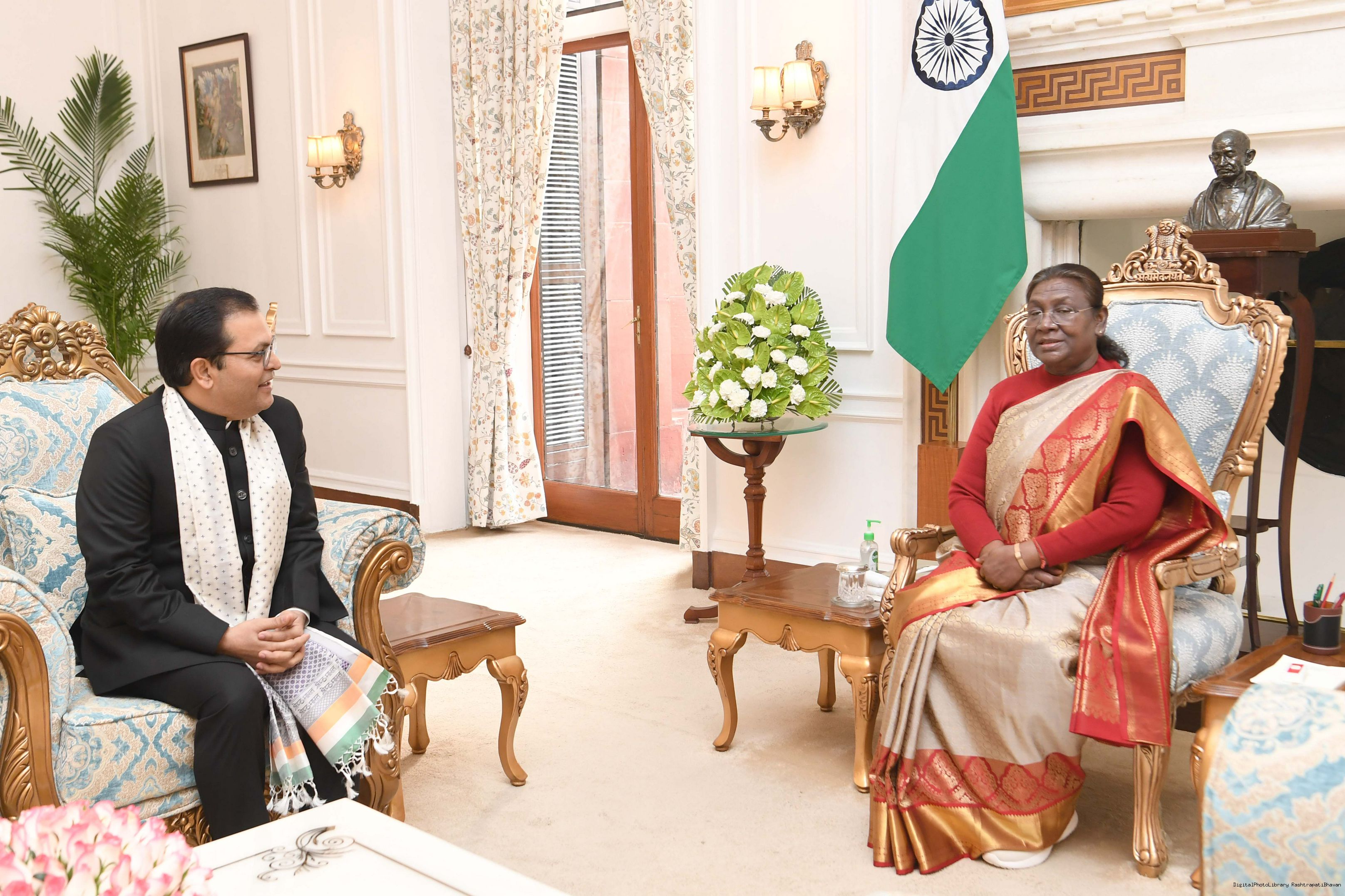 The Ambassador-designate of India to the Federal Democratic Republic of Ethiopia, Shri Anil Kumar Rai meeting with the President of India Smt. Droupadi Murmu at Rashtrapati Bhavan on January 22, 2024.