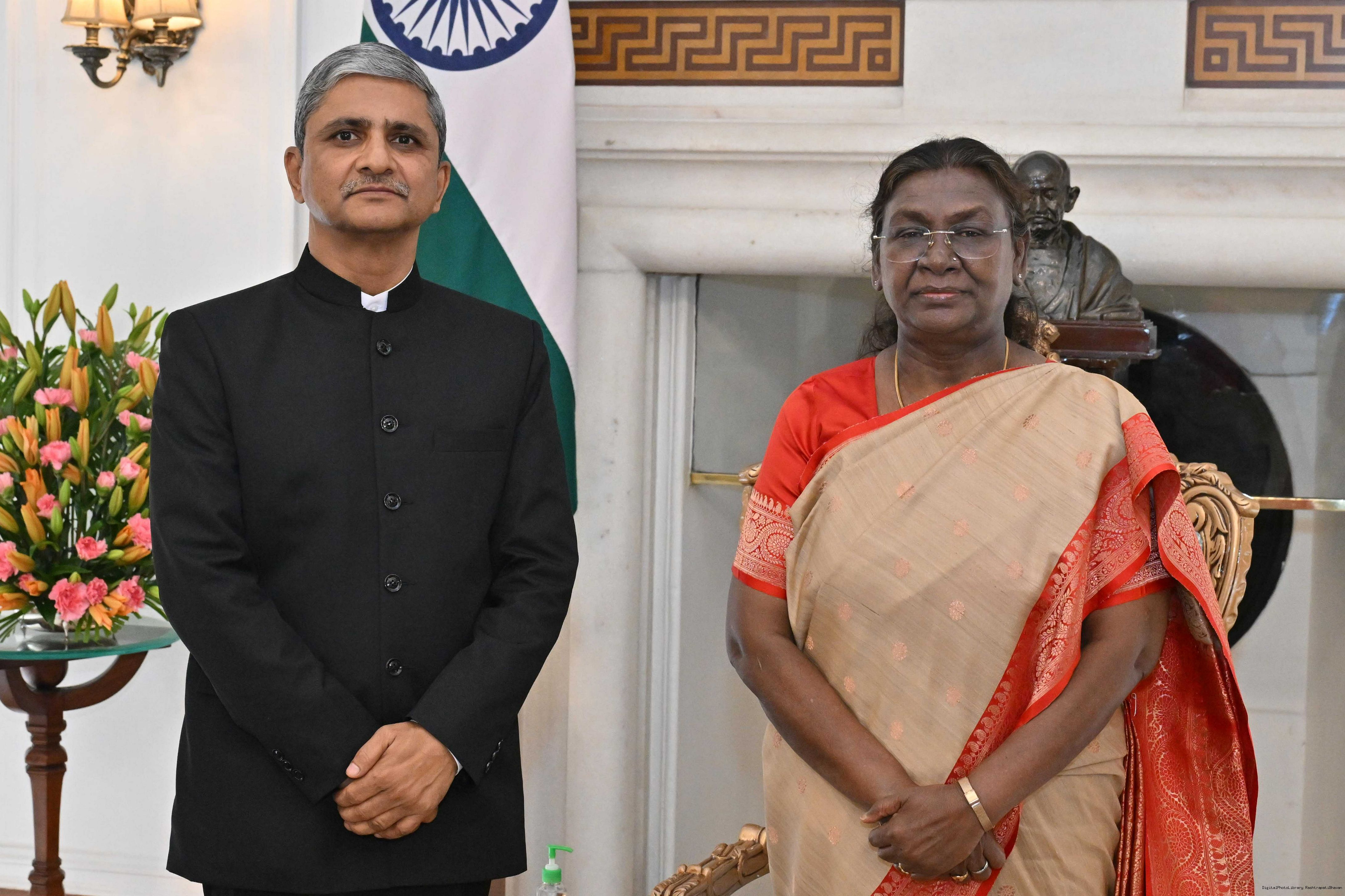 The Ambassador-designate of India to the Republic of South Sudan, Shri Anil Nautiyal meeting with the President of India Smt. Droupadi Murmu at Rashtrapati Bhavan on February 21, 2025.