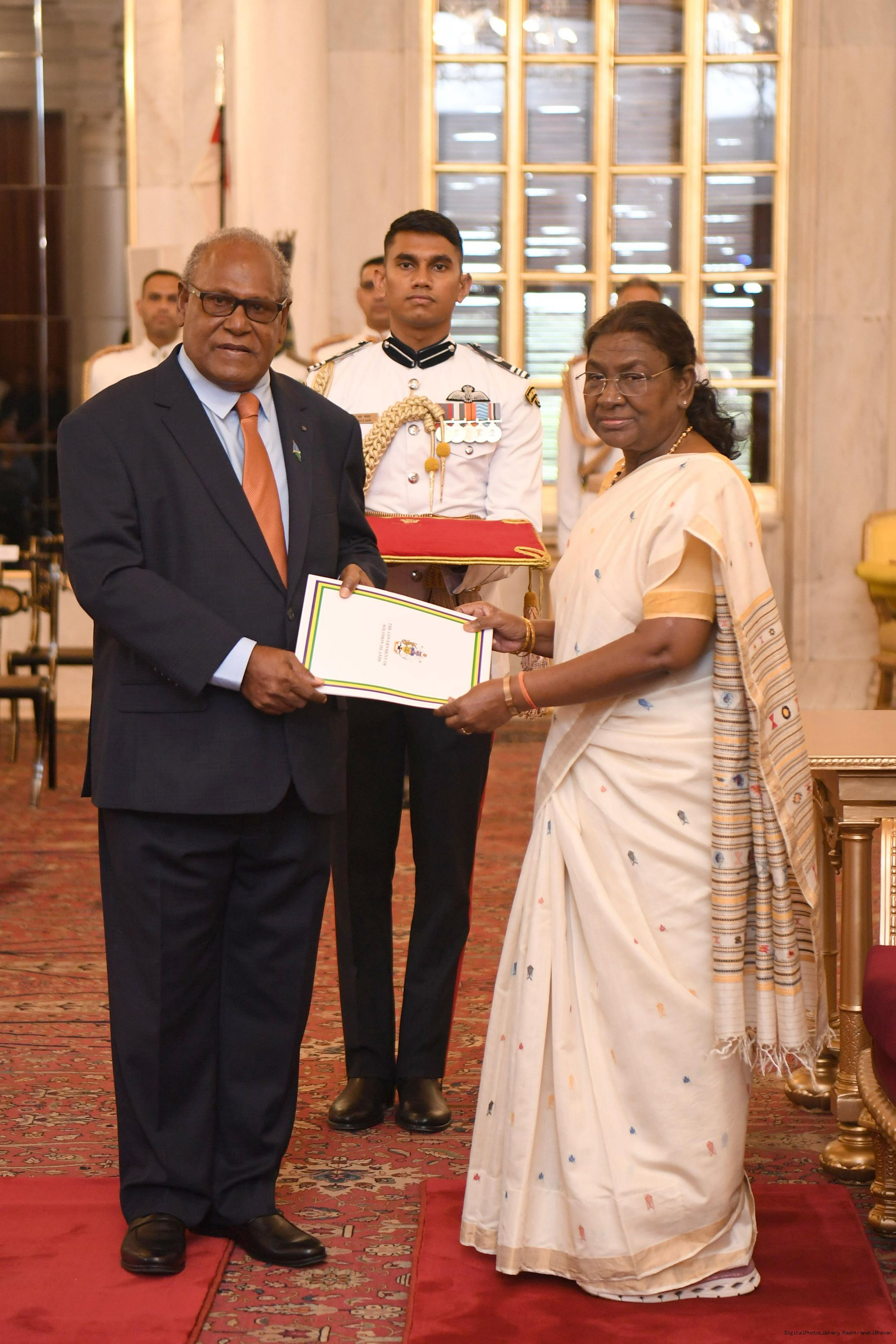 The High Commissioner-designate of Solomon Islands, H.E. Mr Anthony Makabo presenting his credentials to the President of India, Smt Droupadi Murmu at Rashtrapati Bhavan on September 6, 2024.