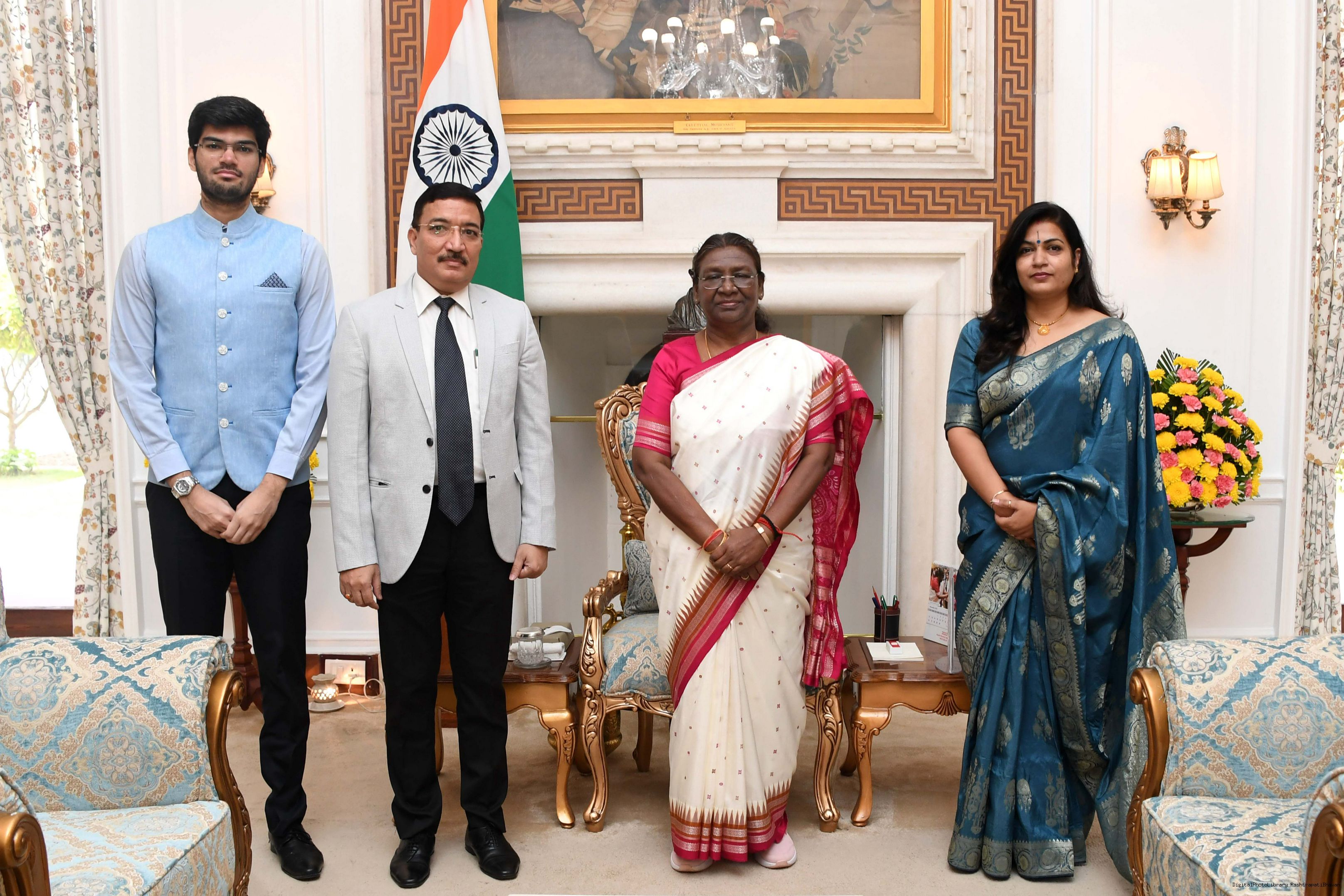 Shri Anurag Khare, SE, CPWD (President's Estate) along with others meeting with the President of India, Smt. Droupadi Murmu at Rashtrapati Bhavan on November 17, 2023.